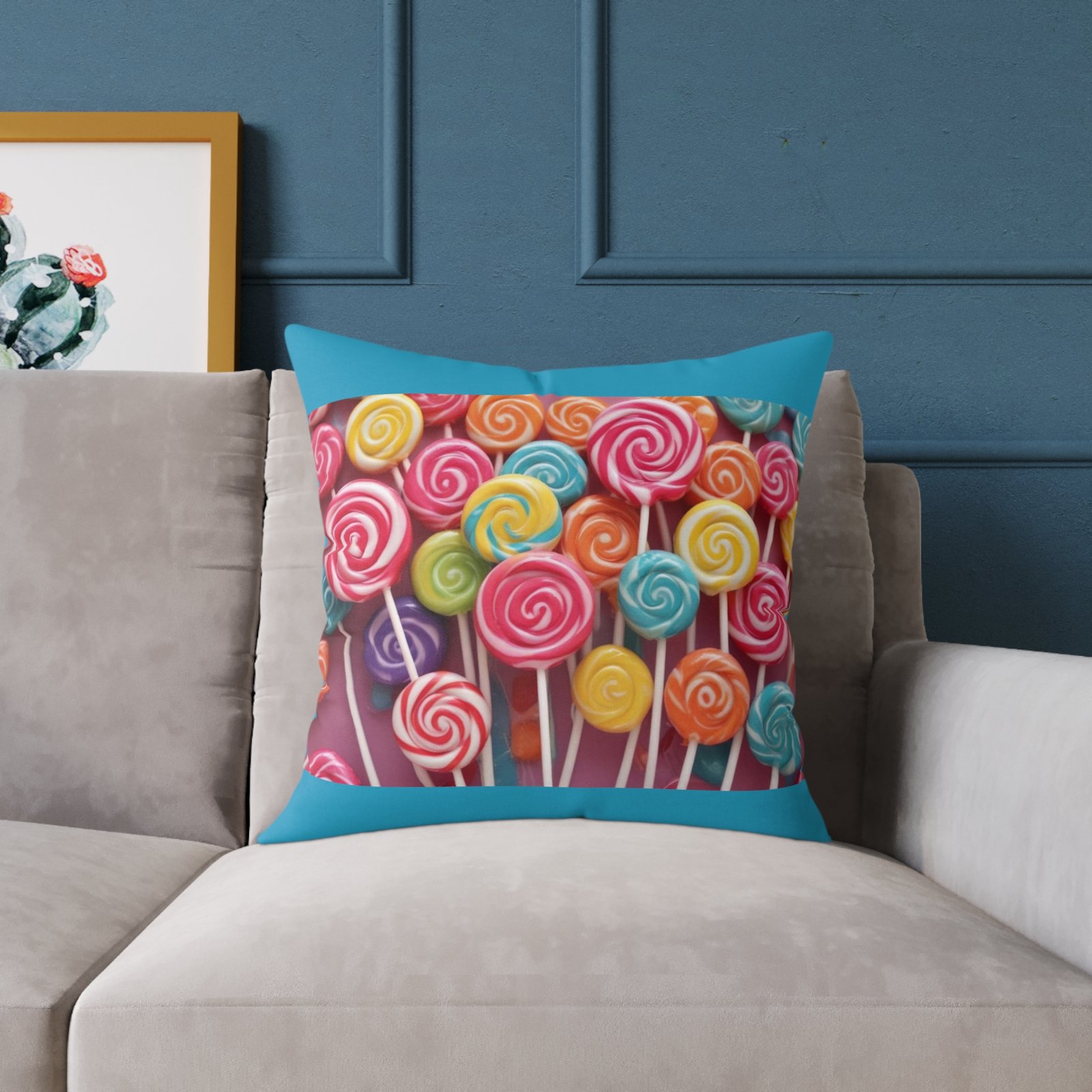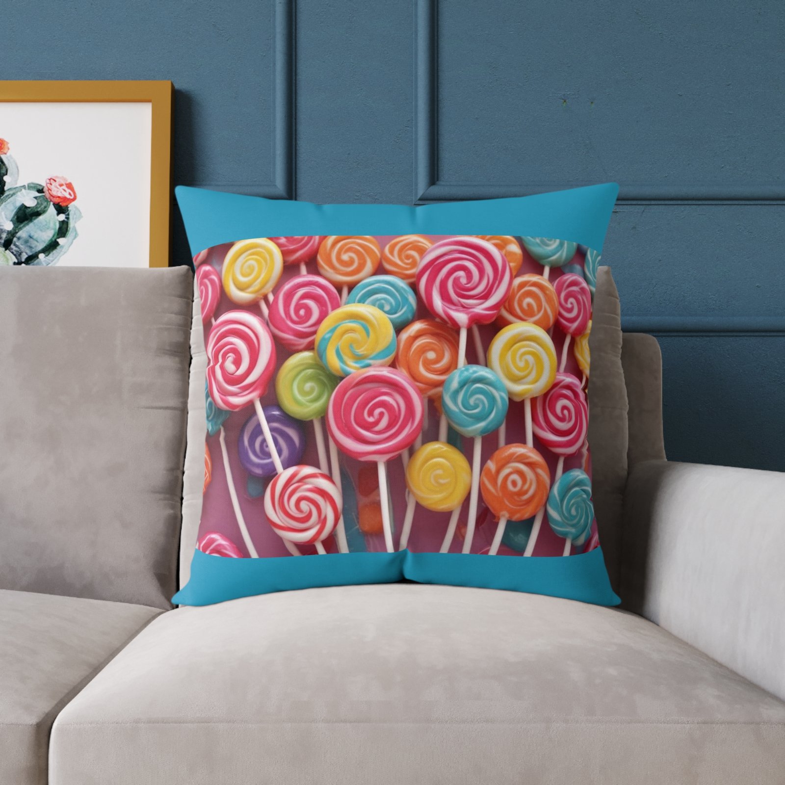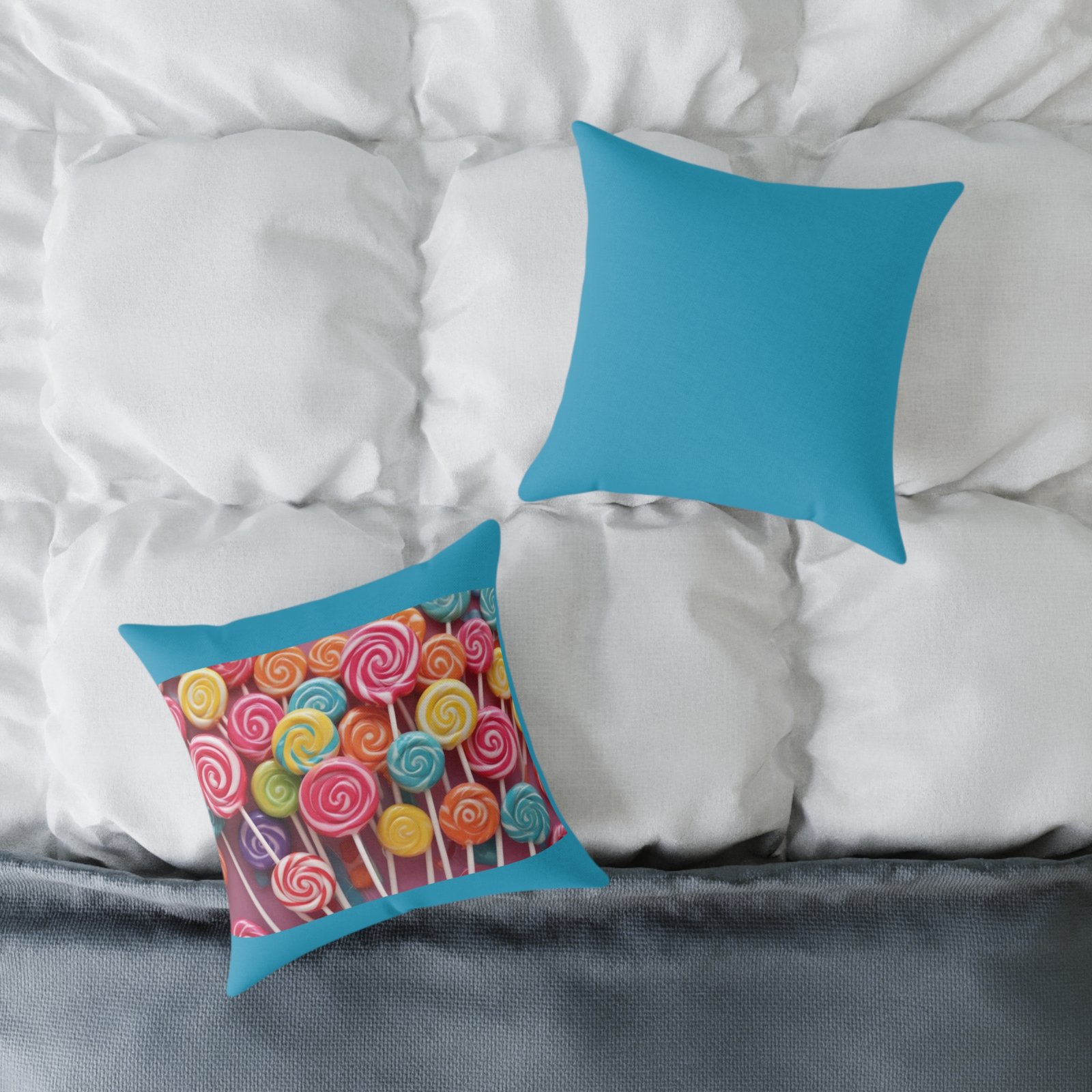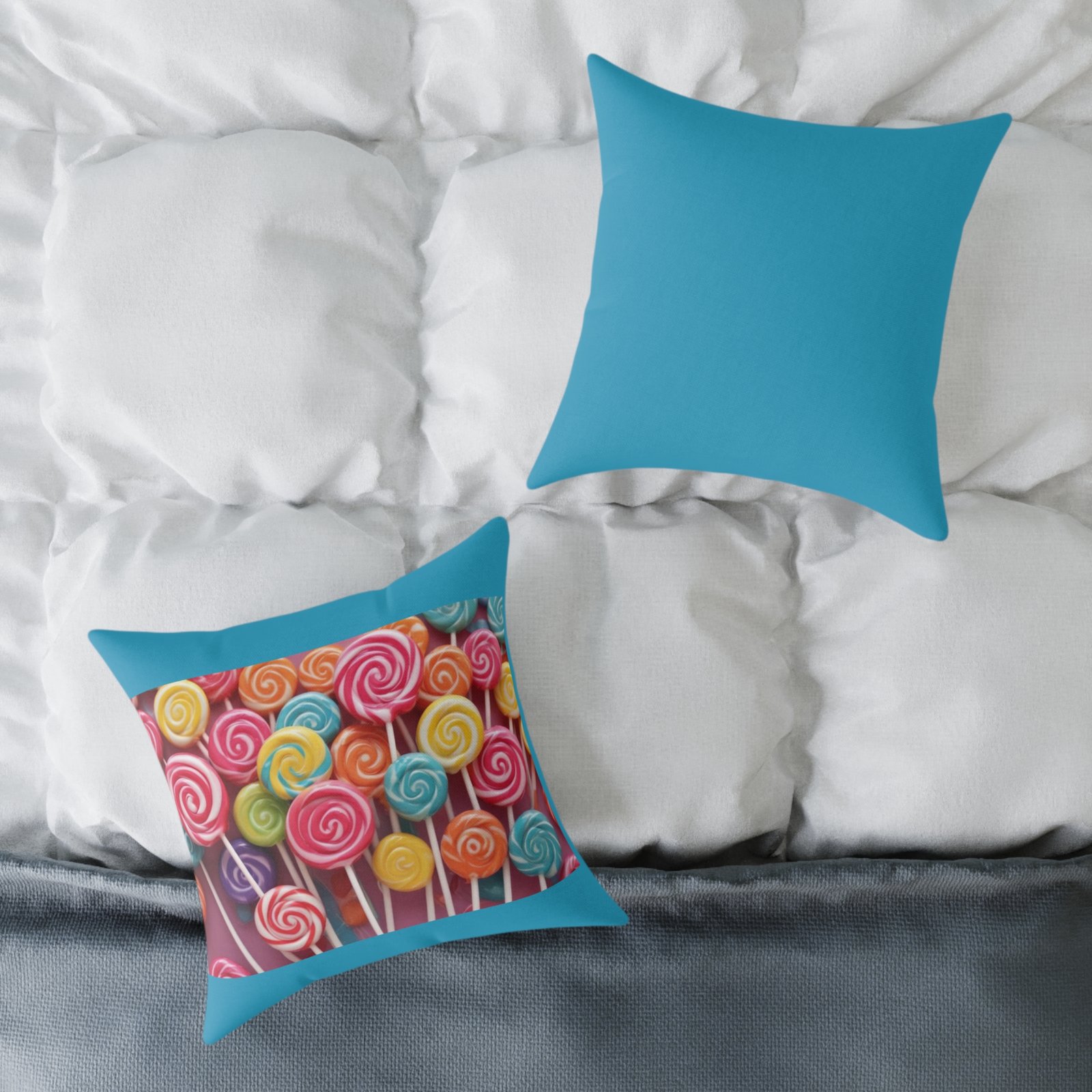 Candy Sweets Pillow Cushion. Help uplift any home’s surroundings with customized polyester pillows. Featuring a concealed zipper that doesn’t show, each pillow comes already filled with 100% polyester filling. Add your art and help create unique home decorations that capture the eye of guests and cheer the home owner’s mood. 08
