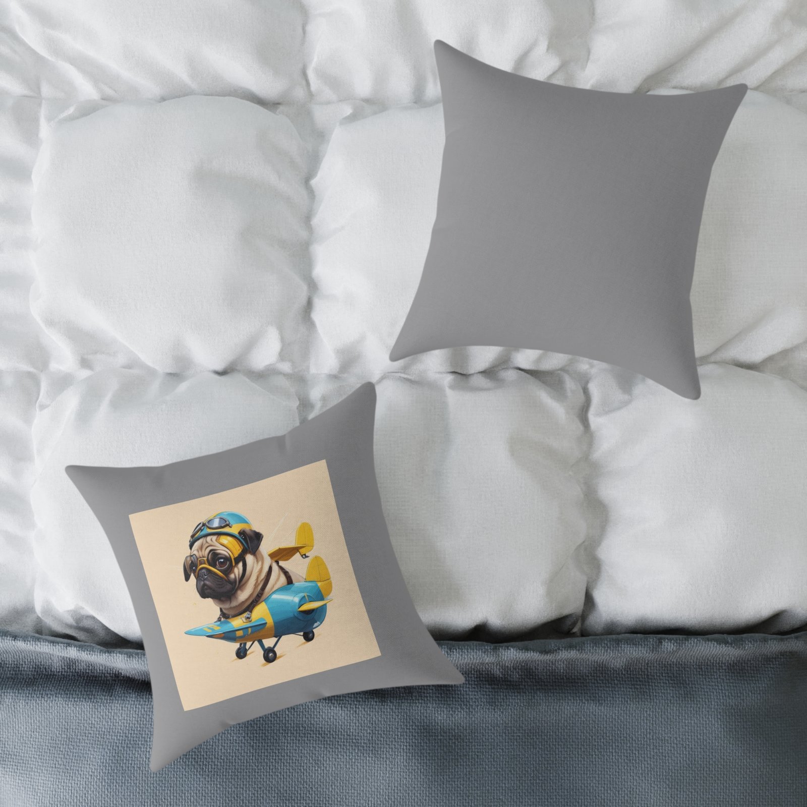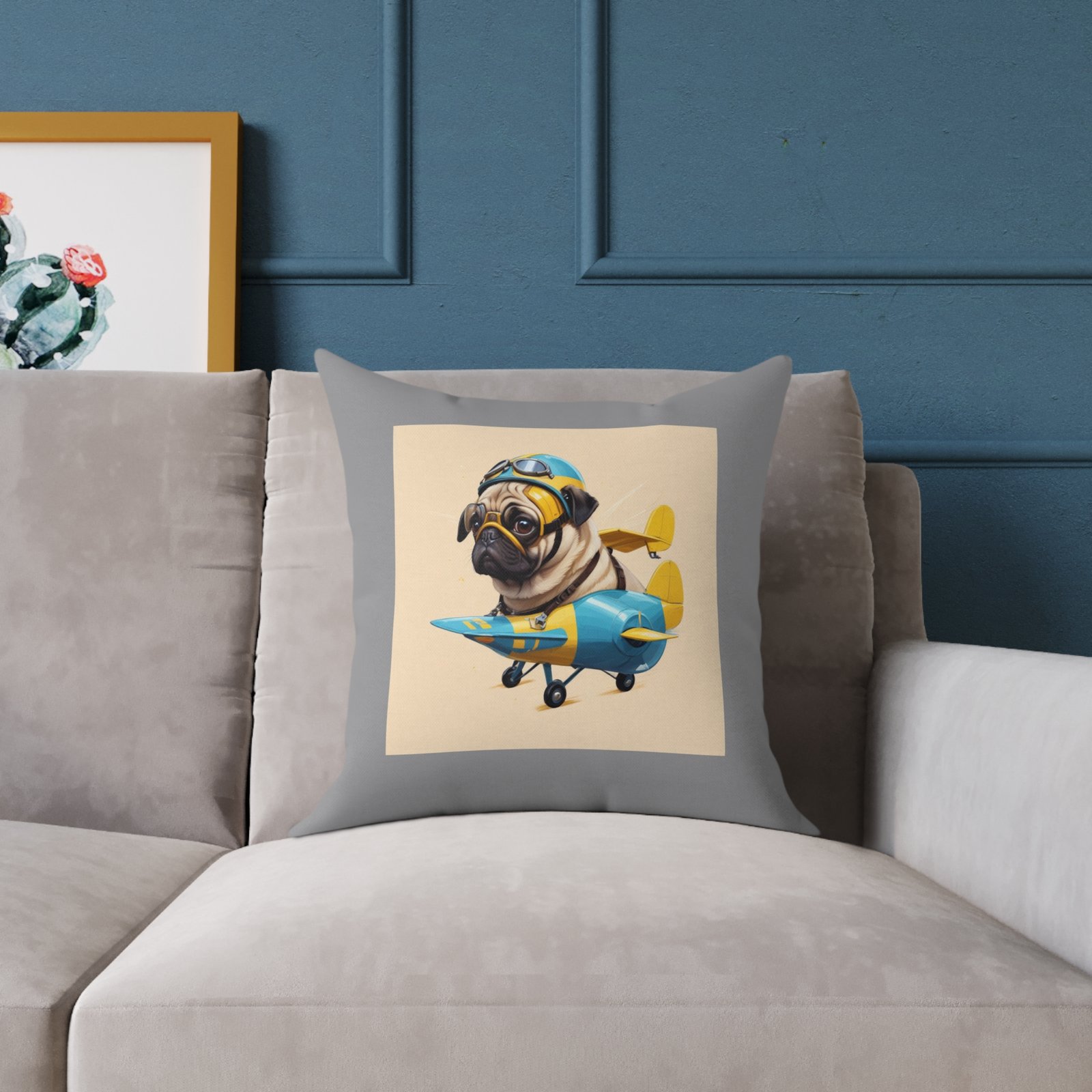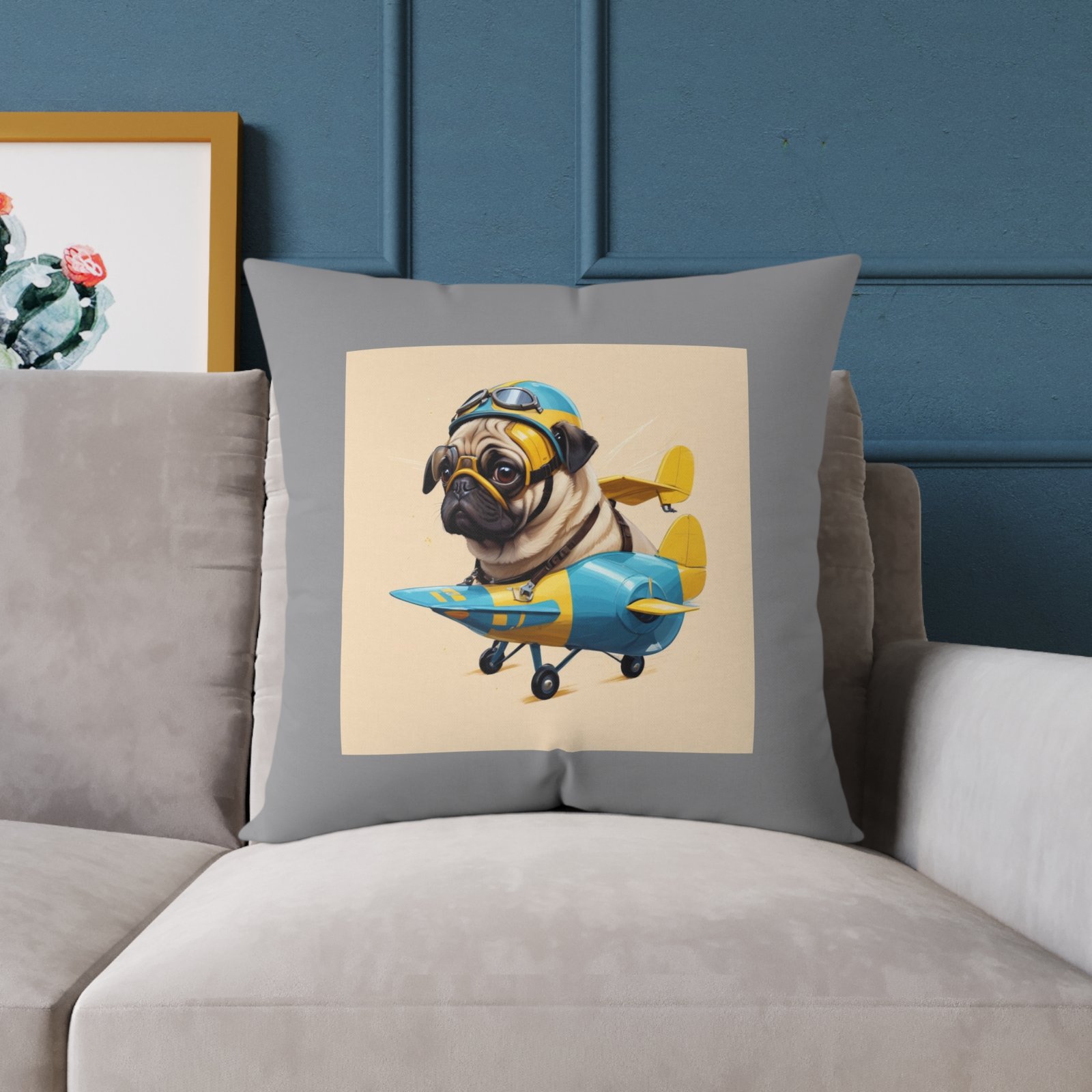 Funny Cartoon Pug pup Dog Aeroplane 08 Cushion Square Poly Canvas Pillow 08