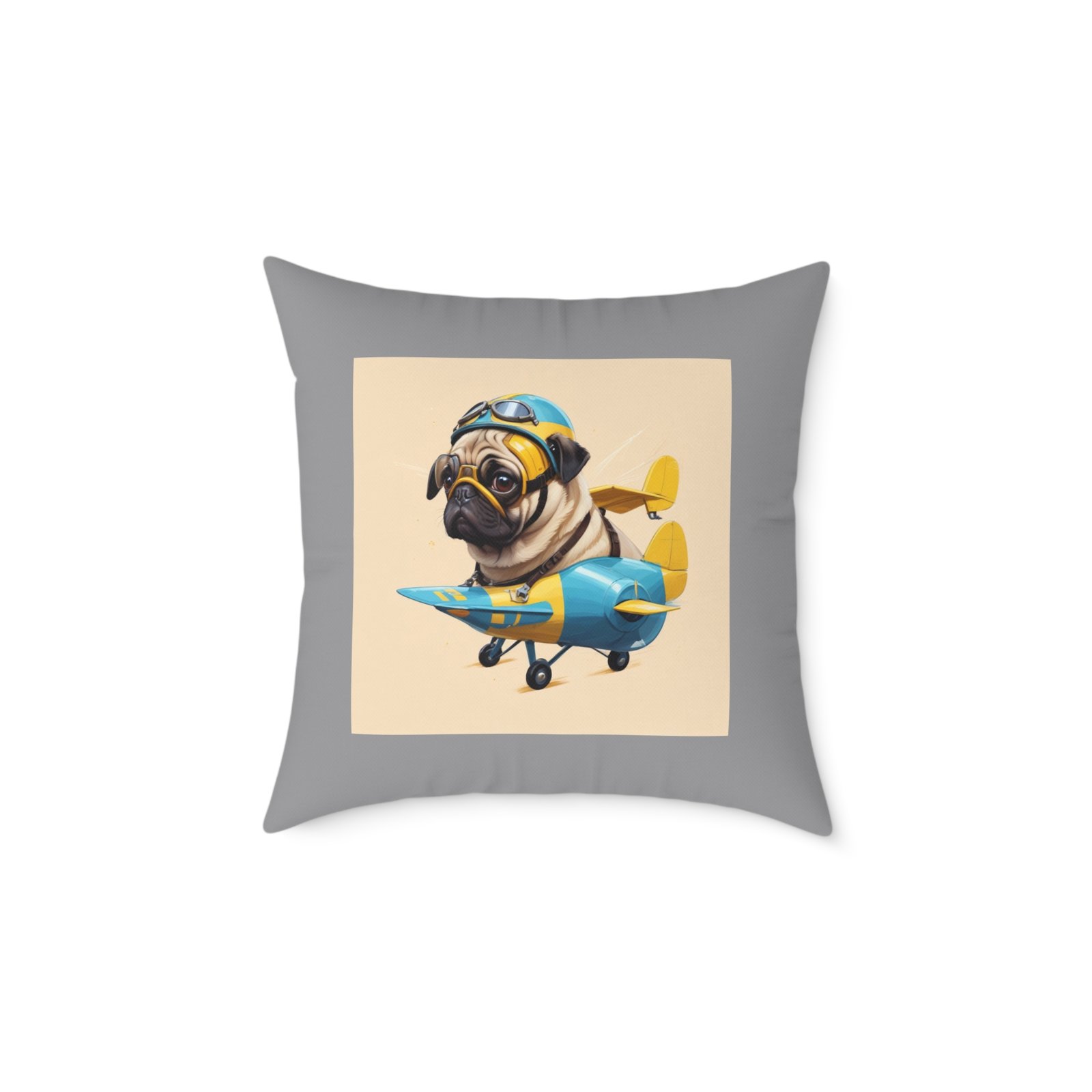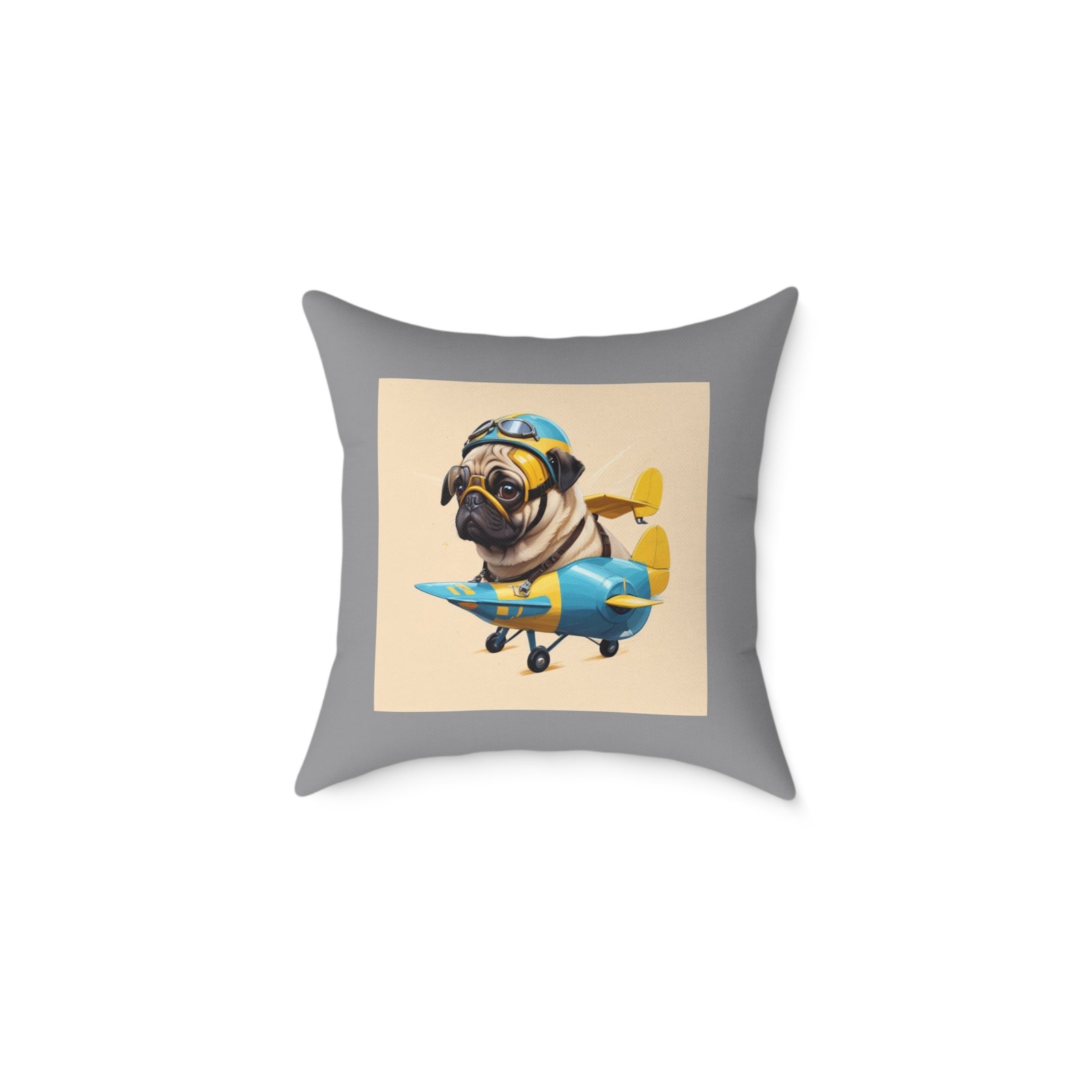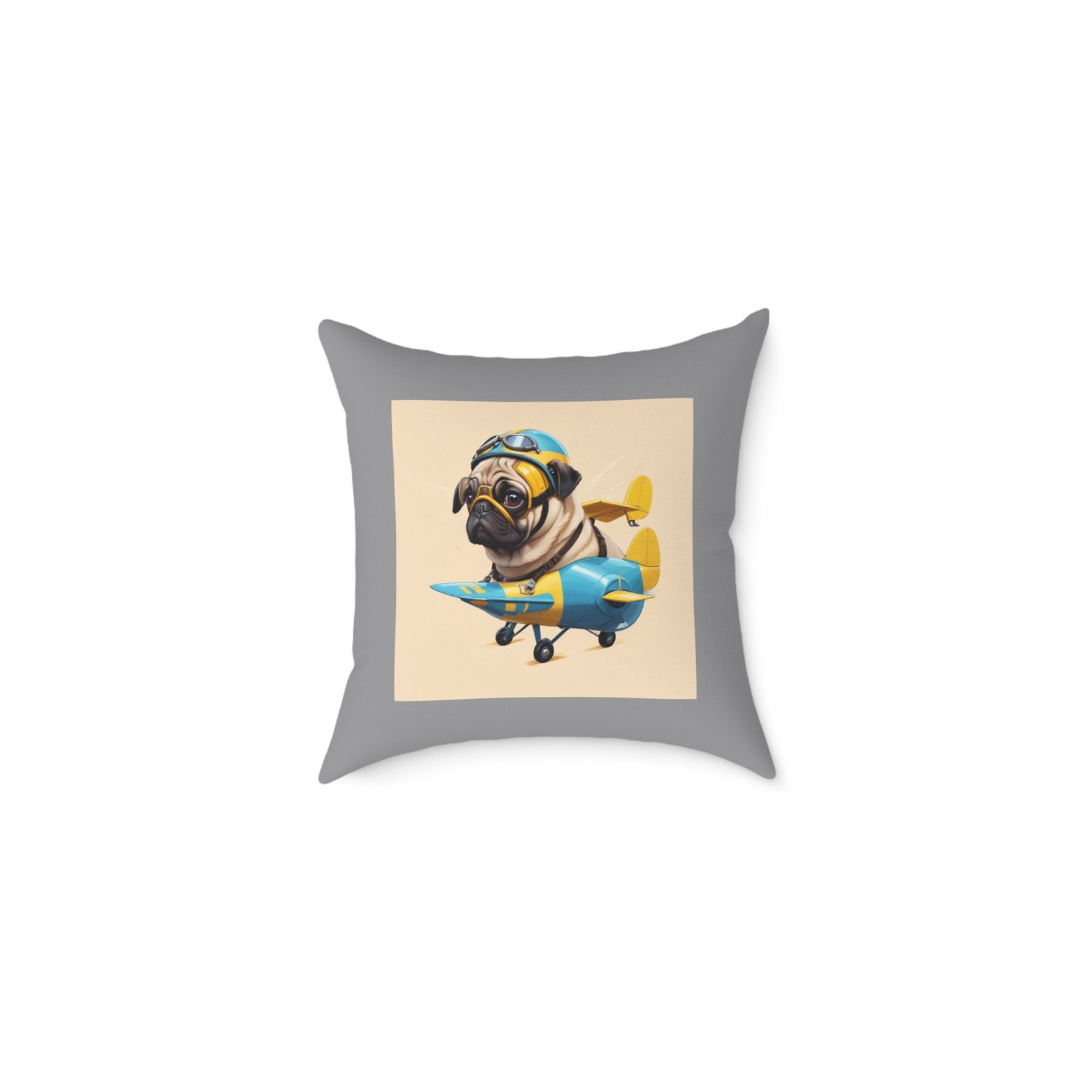 Funny Cartoon Pug pup Dog Aeroplane 08 Cushion Square Poly Canvas Pillow 08