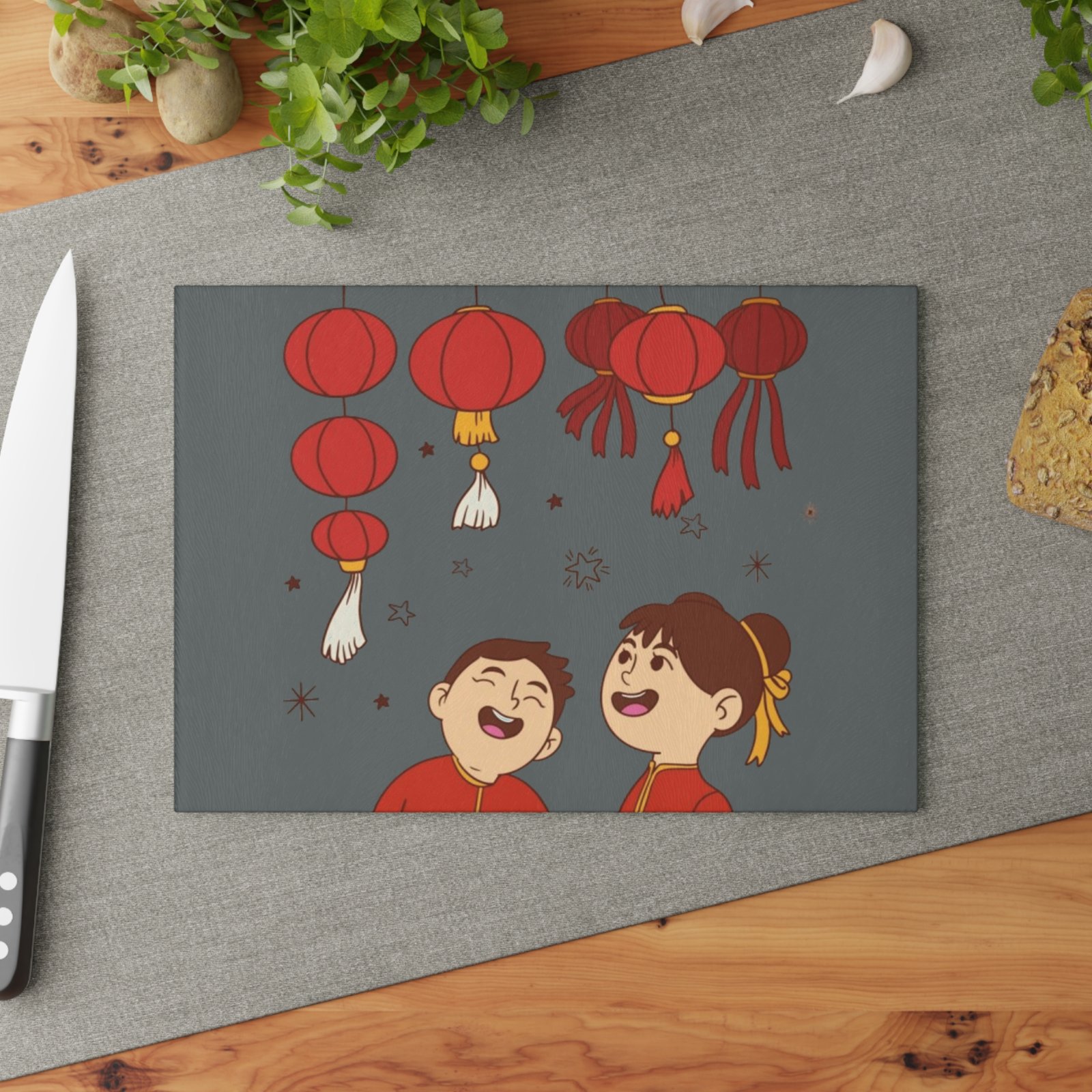 Oriental Glass Cutting Board – Unique Kitchen Decor, Perfect Gift for Chefs, Home Cooks, and Housewarmings, Ideal for Birthdays or Holidays