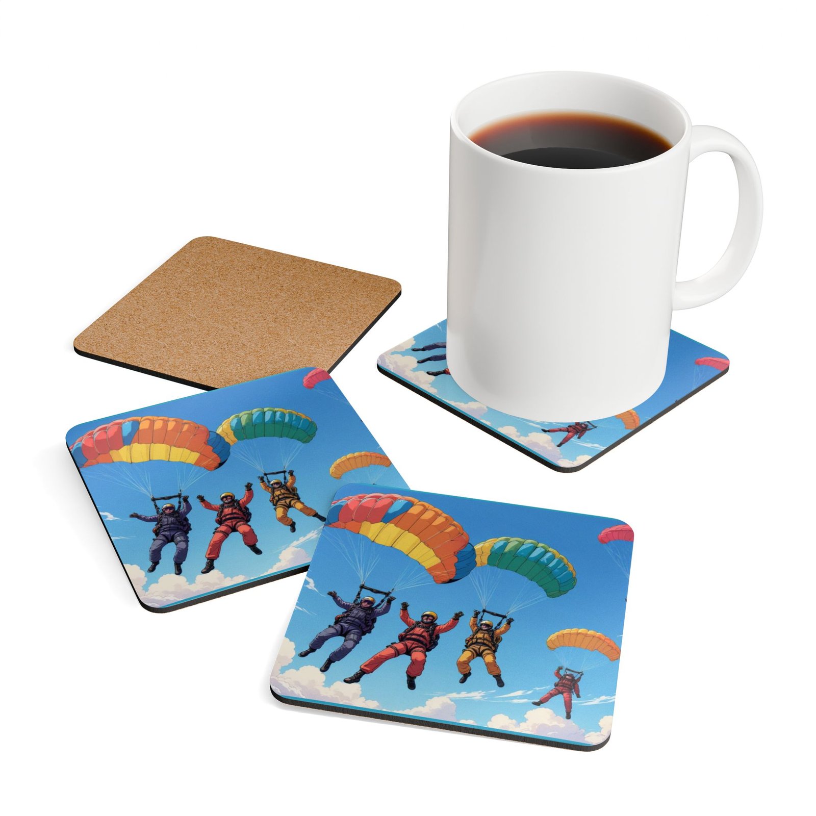 Parachuting .Corkwood Coaster Set