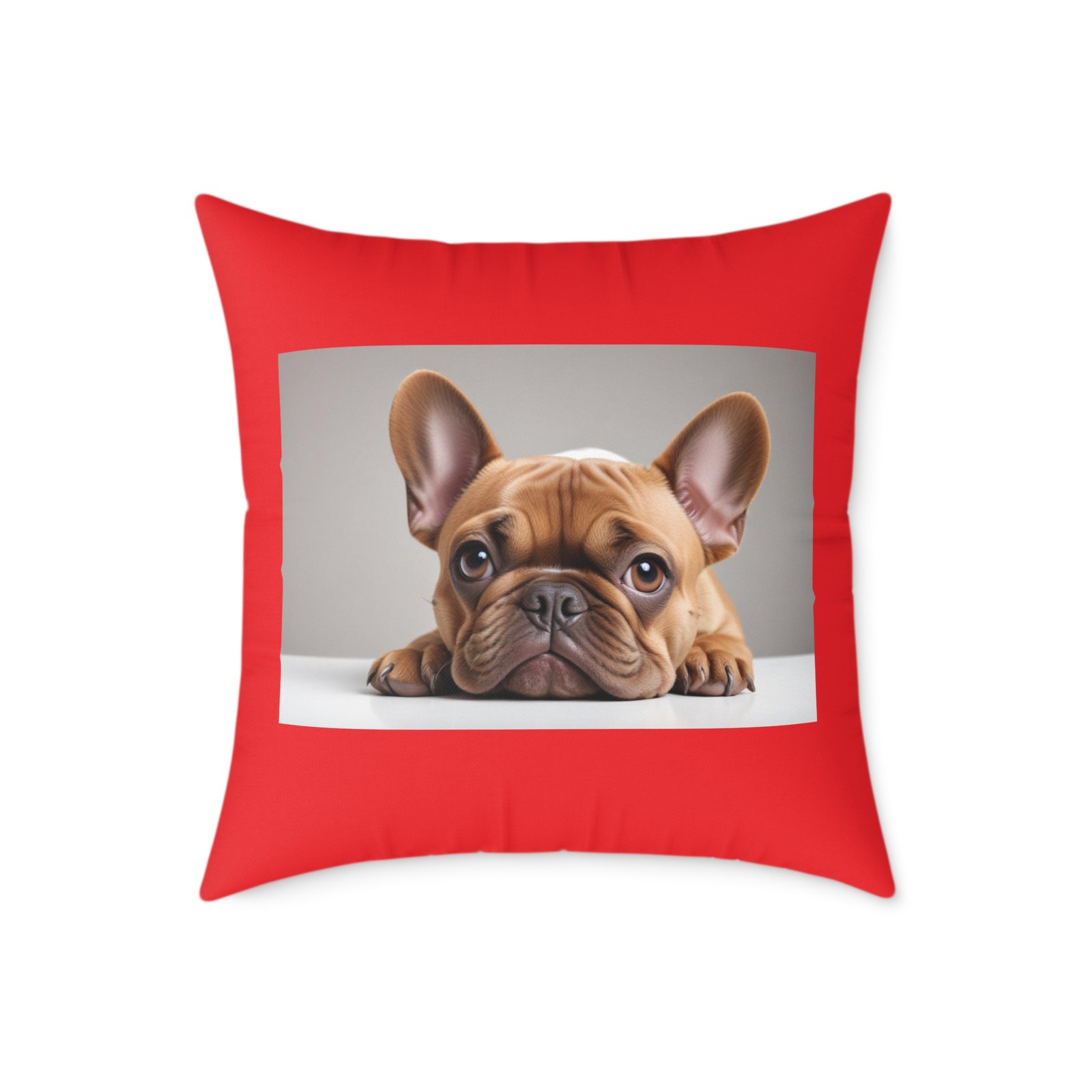 Dog Pet Puppy 08 Cushion. French Bulldog .Help uplift any home’s surroundings with customized polyester pillows. Featuring a concealed zipper that doesn’t show, each pillow comes already filled with 100% polyester filling. Add your art and help create unique home decorations that capture the eye of guests and cheer the home owner’s mood. 53