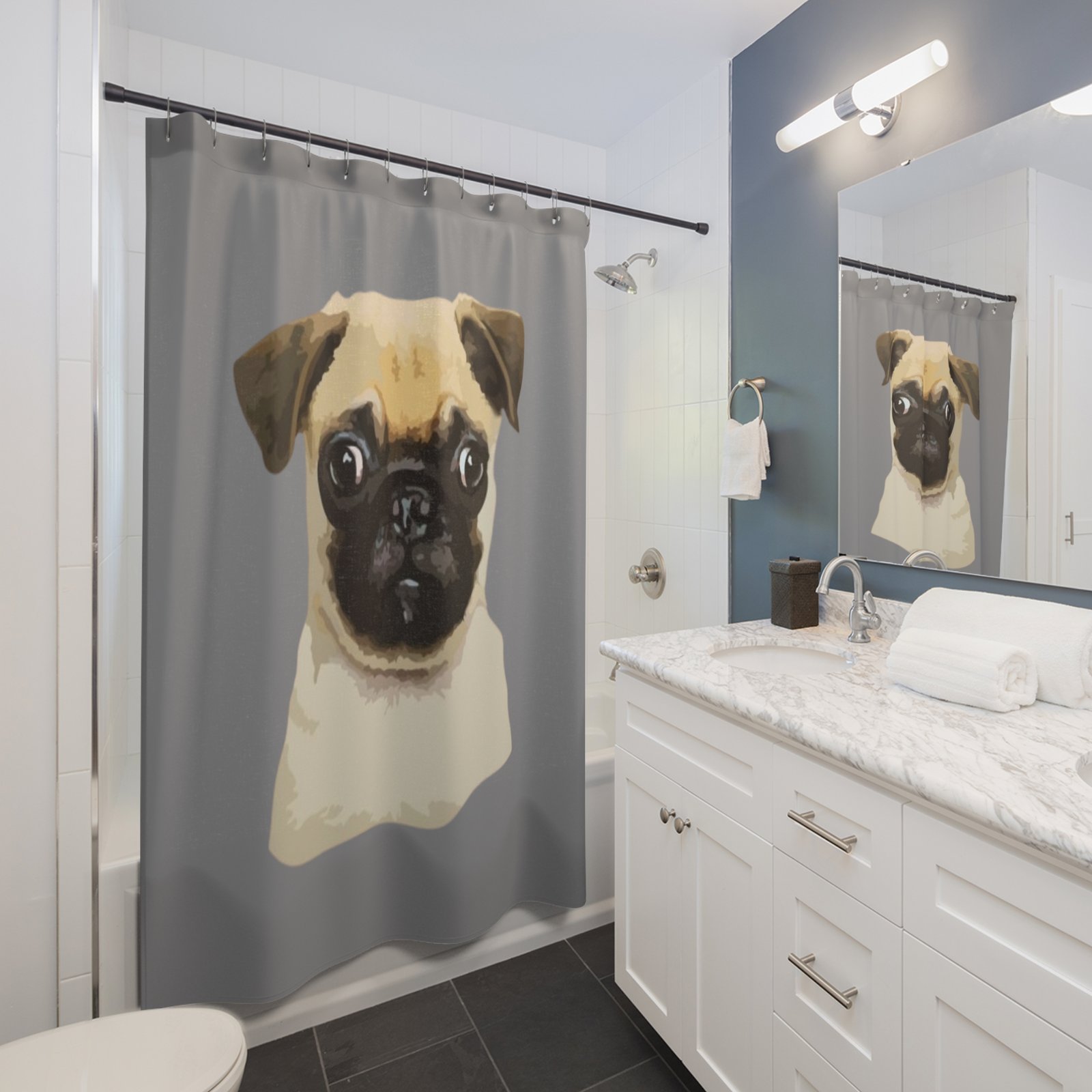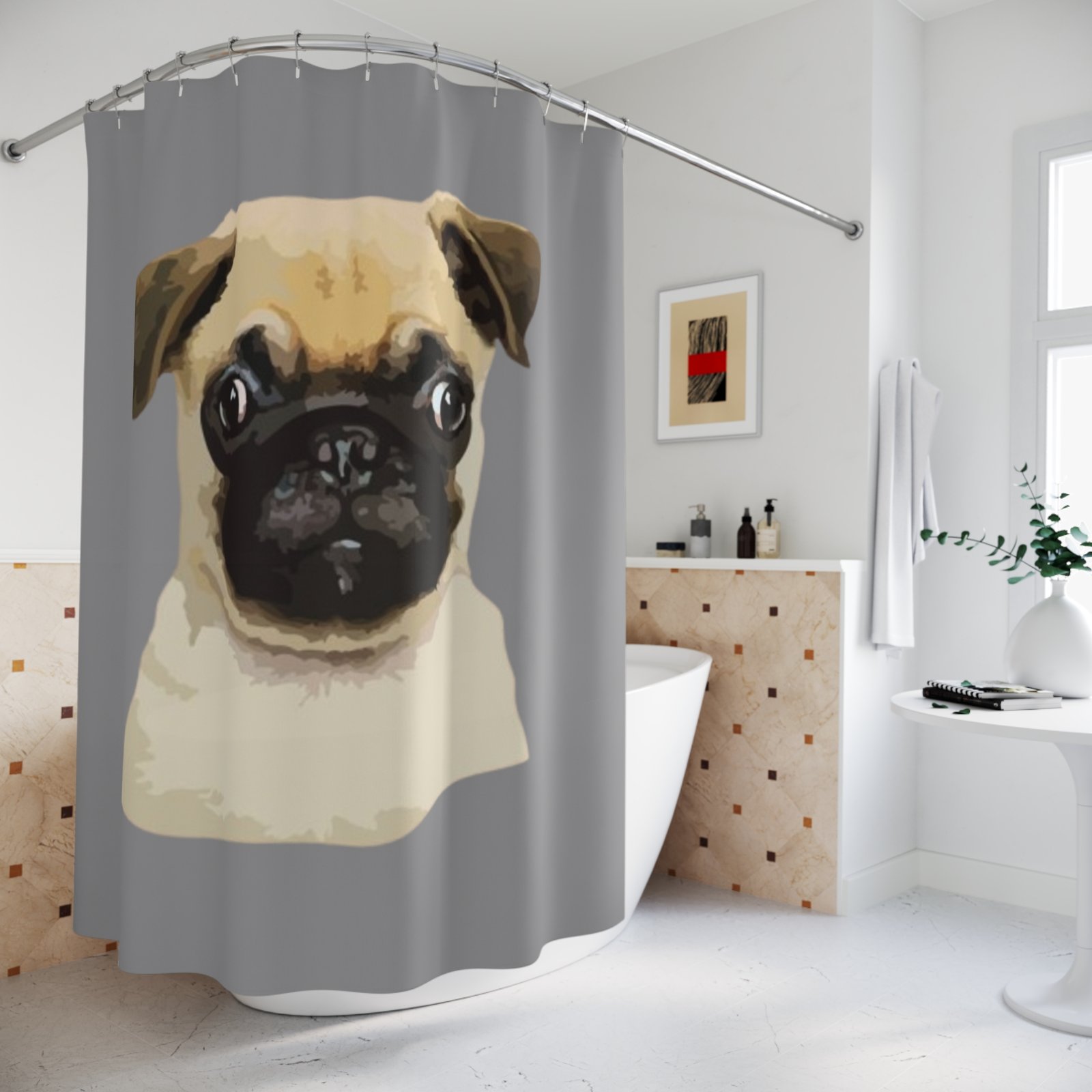 Pug Dog Lover Funny Shower Curtain | Cozy Pet Decor, Dog Lover Gift, Rustic Bathroom Accessory, Home Decoration