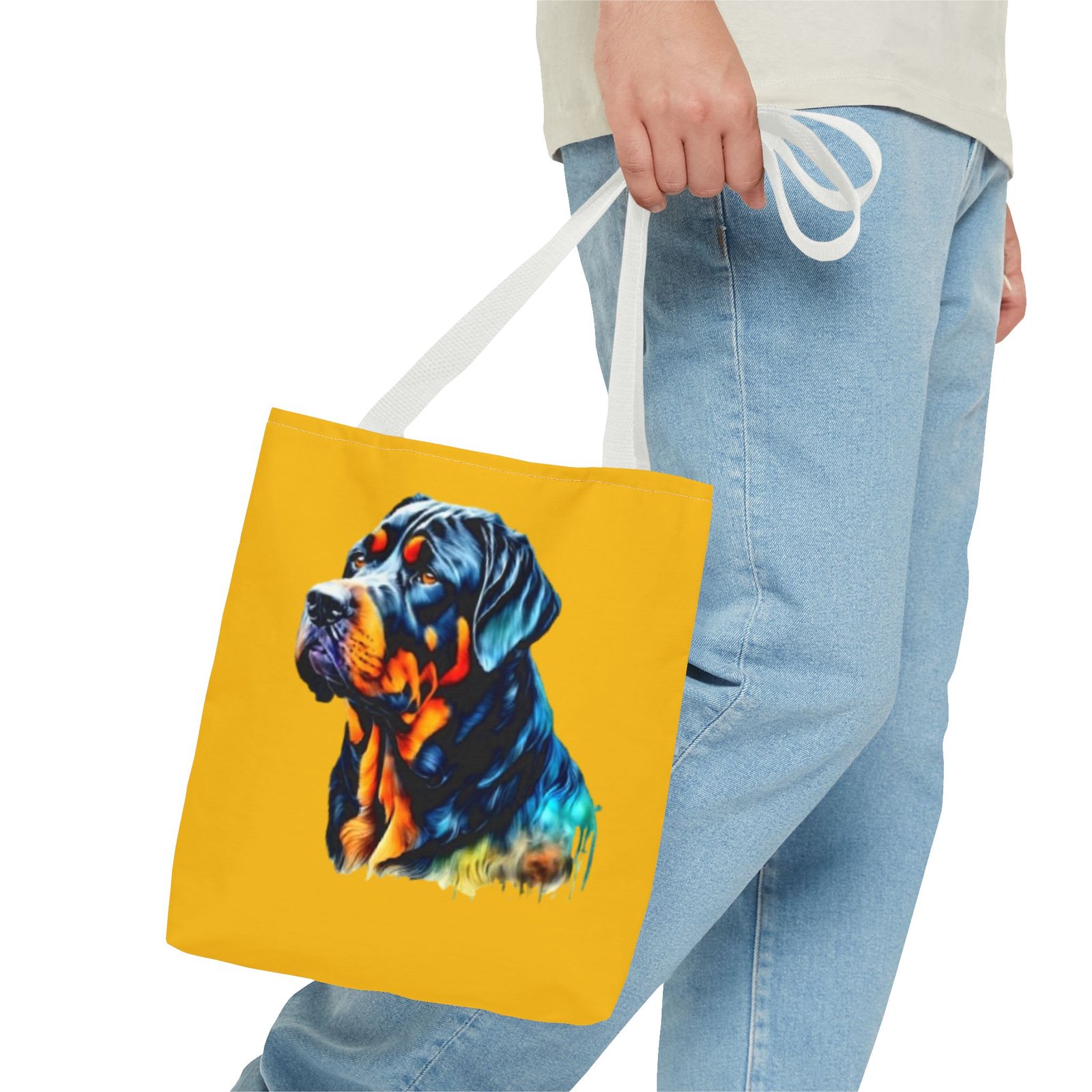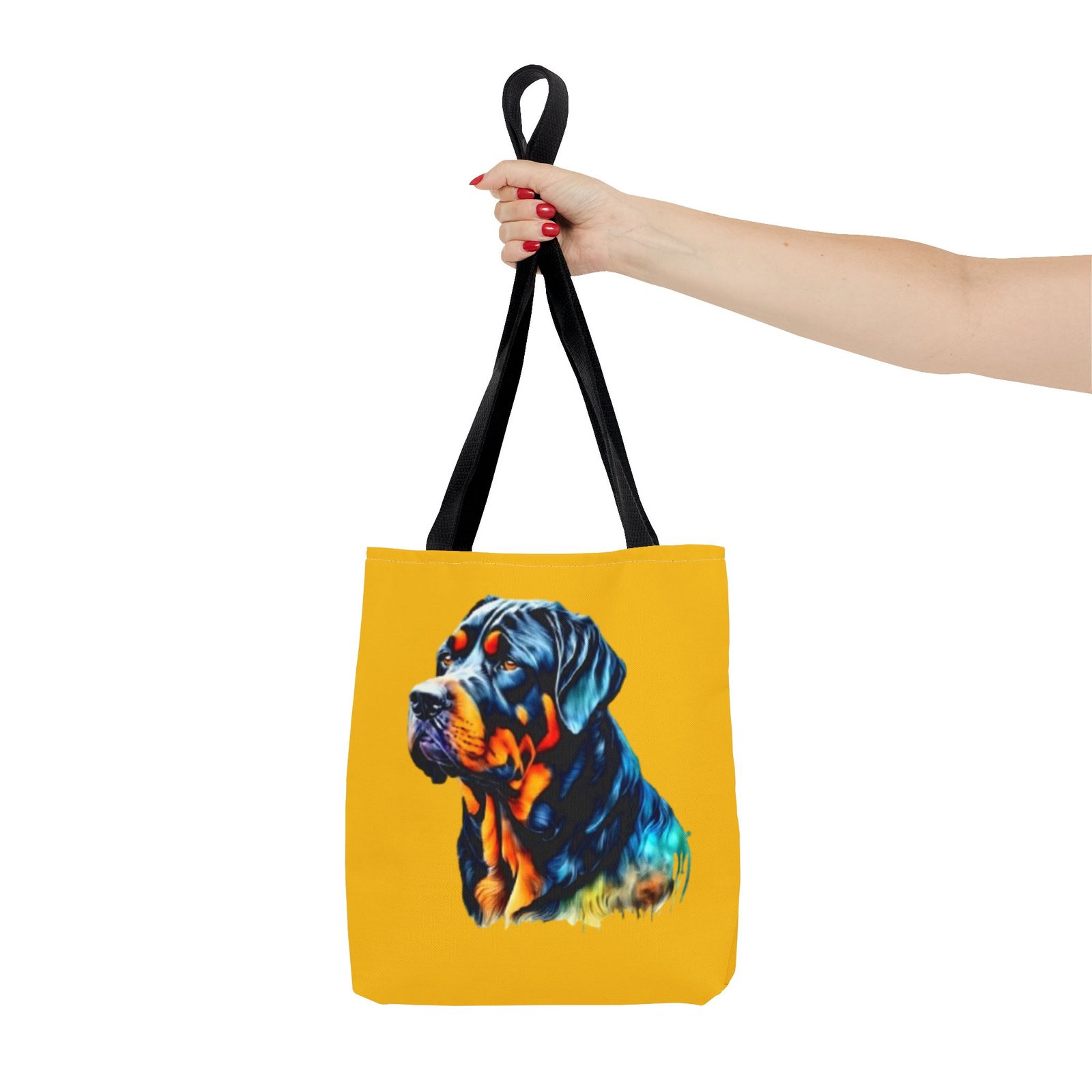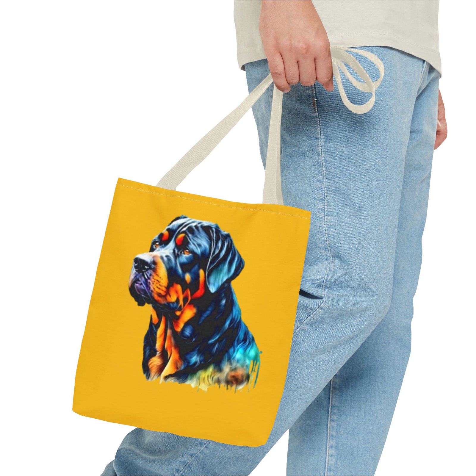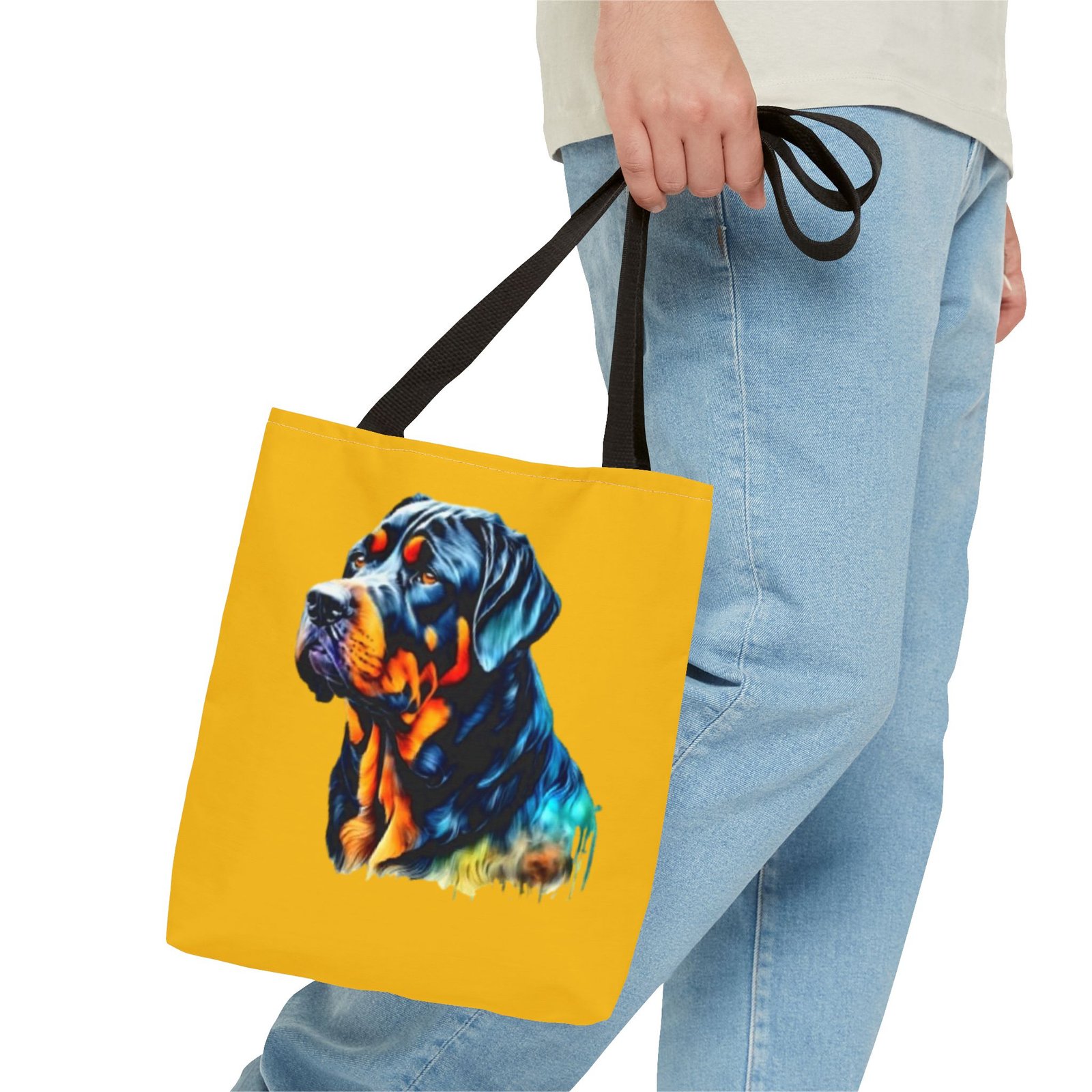 Rottweiler Dog .This stylish Tote Bag is perfect for anyone on the go. Its strong and durable design makes it an ideal companion for daily errands, shopping trips, or beach days. The vibrant print adds a touch of personality, making it a conversation starter. It fits seamlessly into any lifestyle—great for students, moms, or anyone who loves to stay organized. Celebrate special occasions such as birthdays, holidays, or just treat yourself with a practical accessory that stands out!