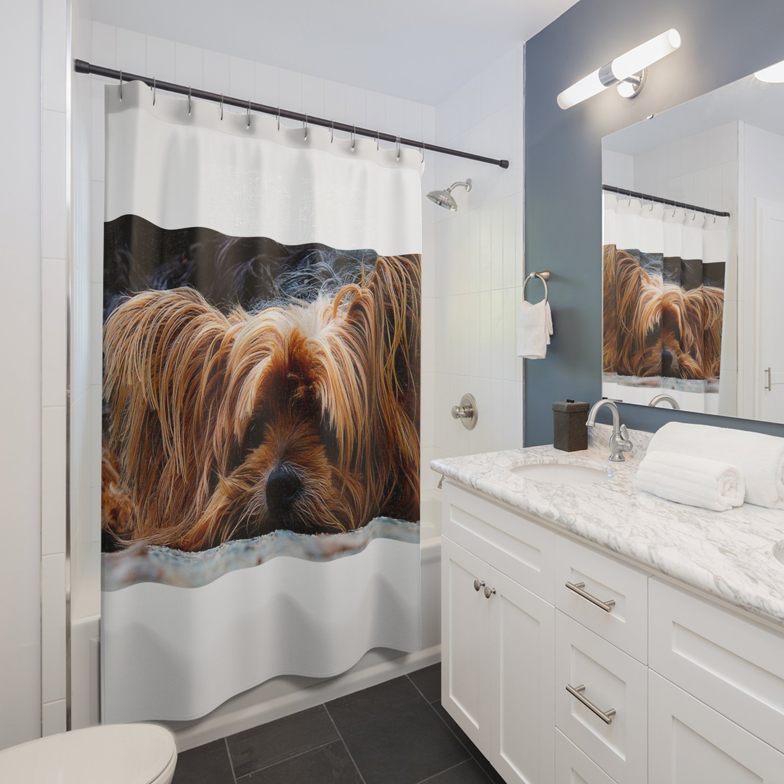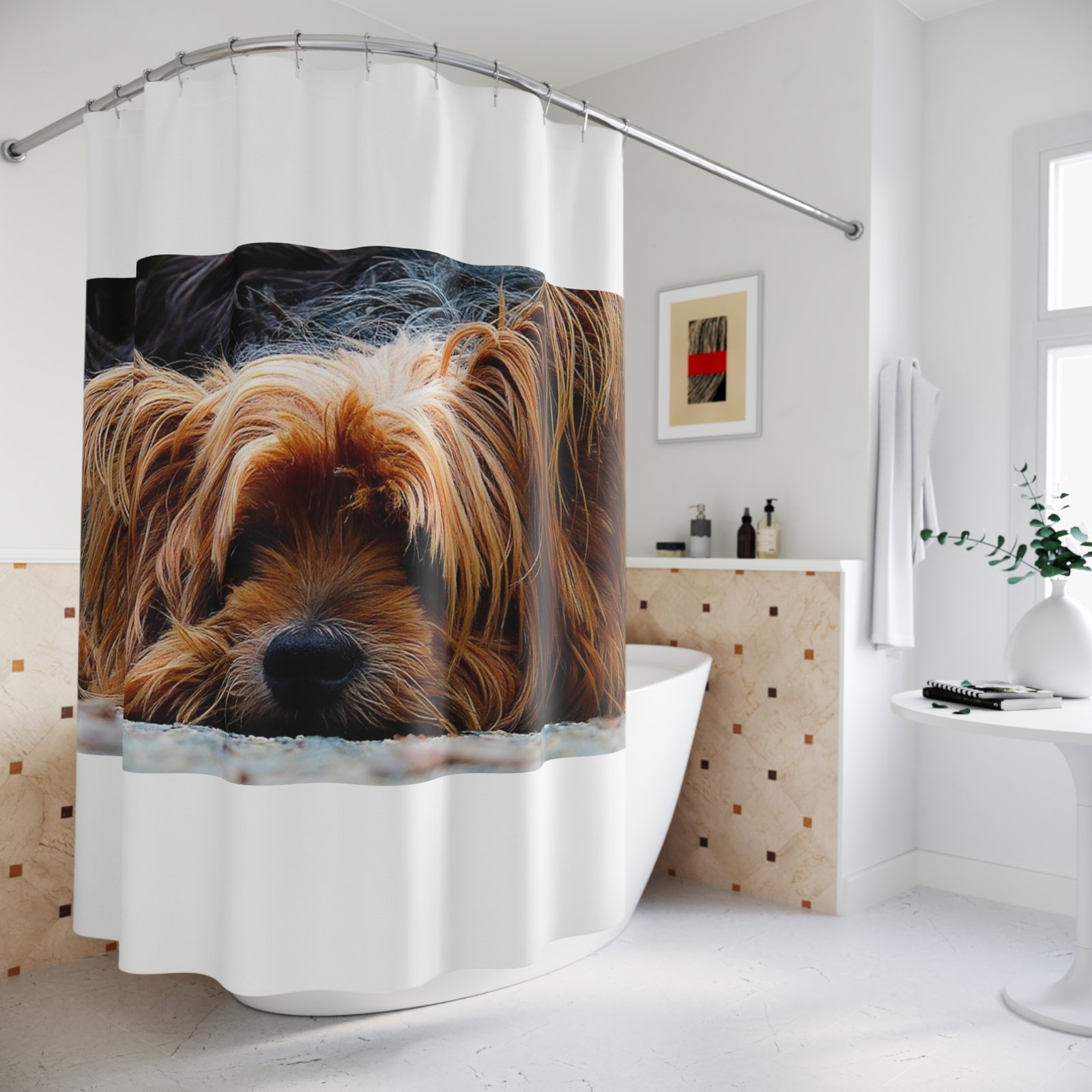 This shower curtain is perfect for Terrier lovers and canine pet enthusiasts. It adds a fun and playful touch to any bathroom, creating a cozy and welcoming atmosphere. Ideal for adults who enjoy furry friends as part of their decor. Great for holidays like National Dog Day or for everyday use.
