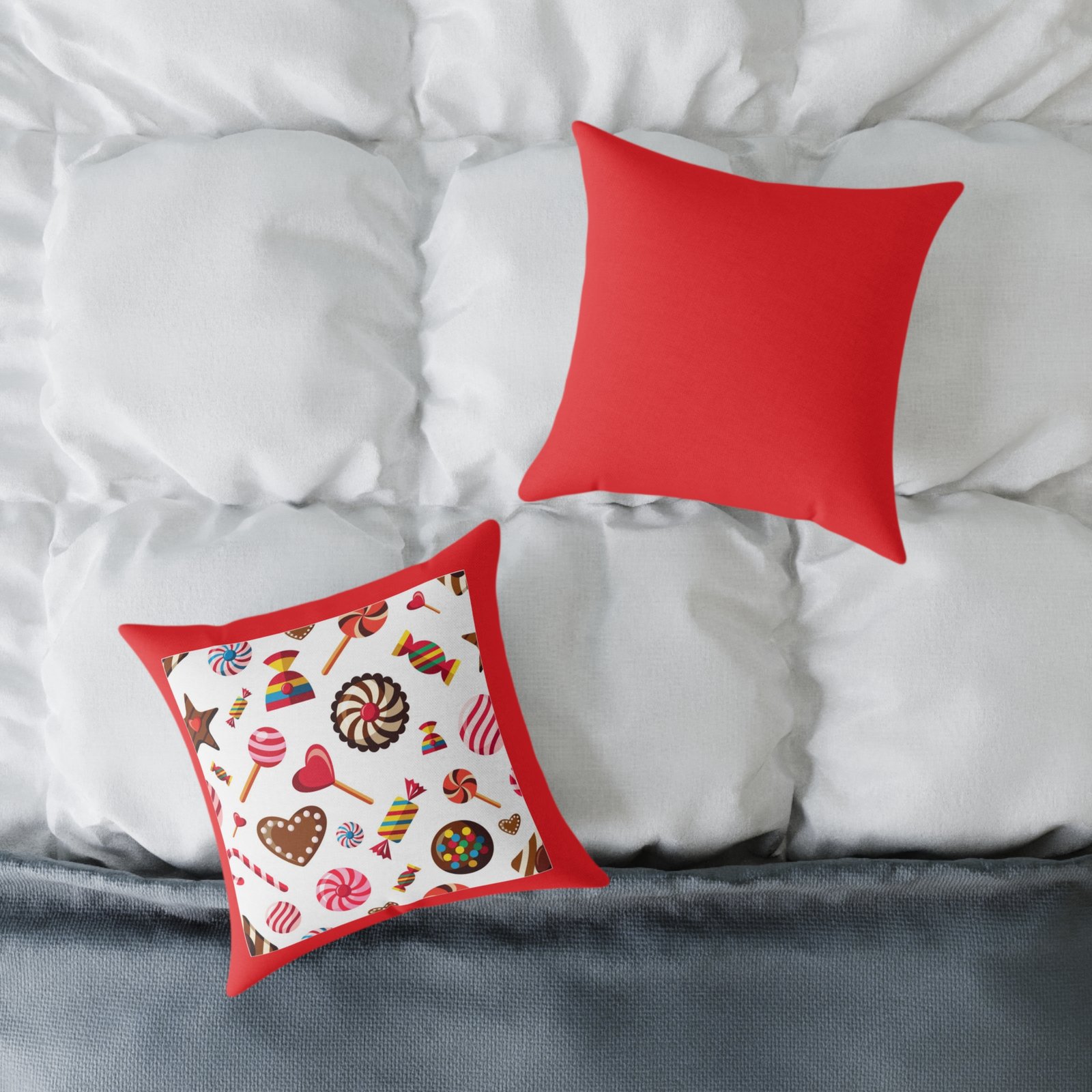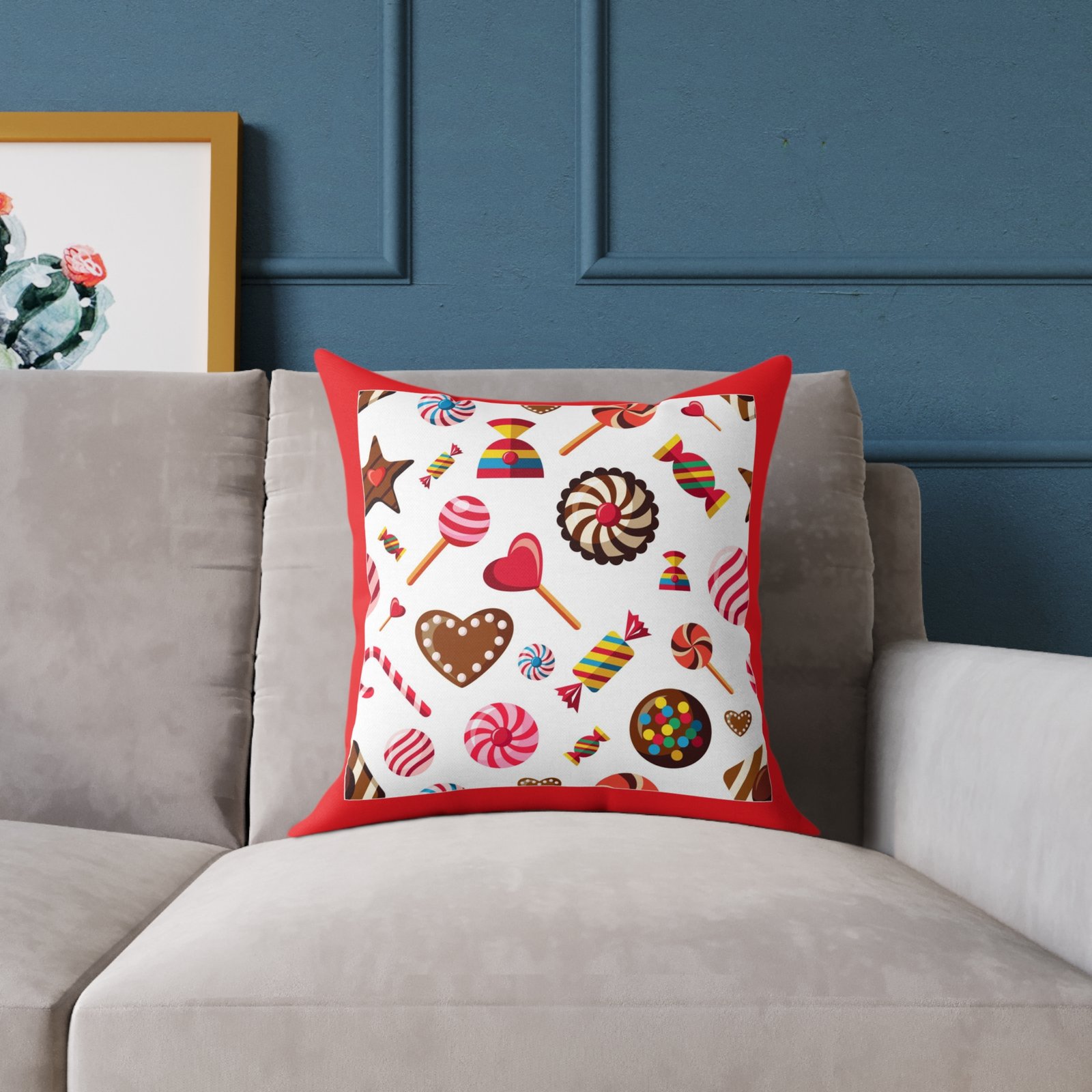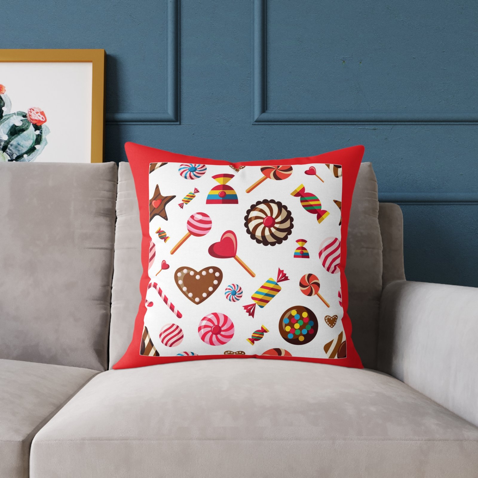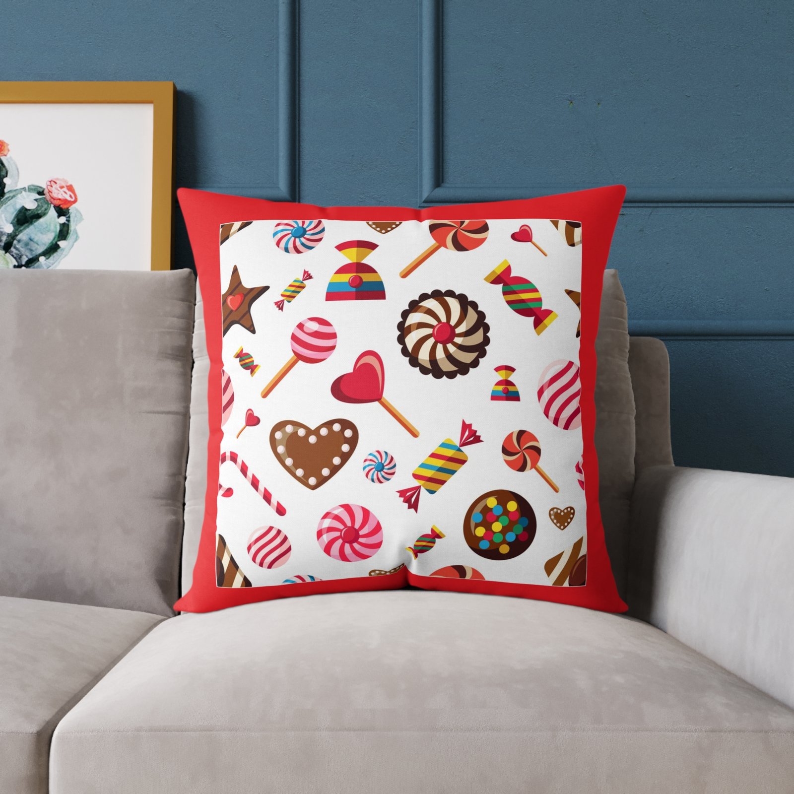 Sweets Candy Cushion Pillow 08Help uplift any home’s surroundings with customized polyester pillows. Featuring a concealed zipper that doesn’t show, each pillow comes already filled with 100% polyester filling. Add your art and help create unique home decorations that capture the eye of guests and cheer the home owner’s mood.