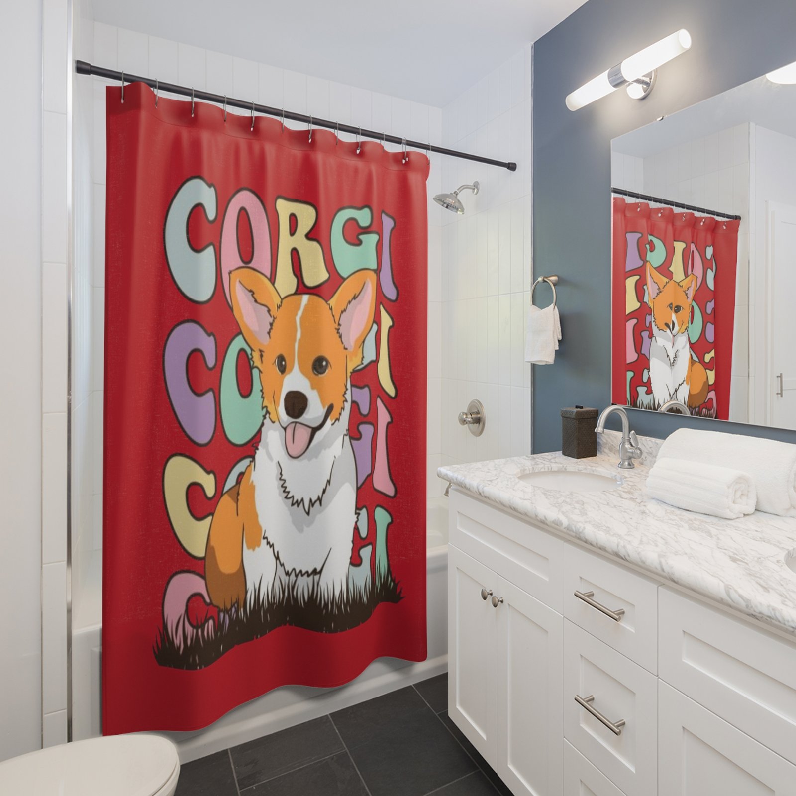 Corgi Dog Lover Funny Shower Curtain | Cozy Pet Decor, Dog Lover Gift, Rustic Bathroom Accessory, Home Decoration