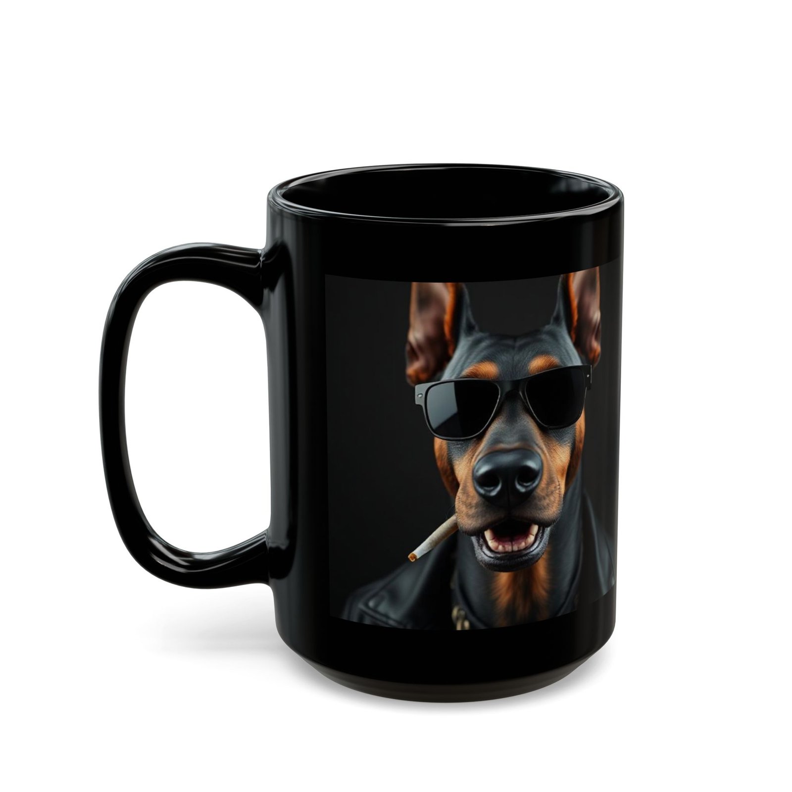 Doberman Cool Dog Mug | Coffee Cup, Dog Lover Gift, Pet Mom Mug, Unique Drinkware, Black Ceramic Cup