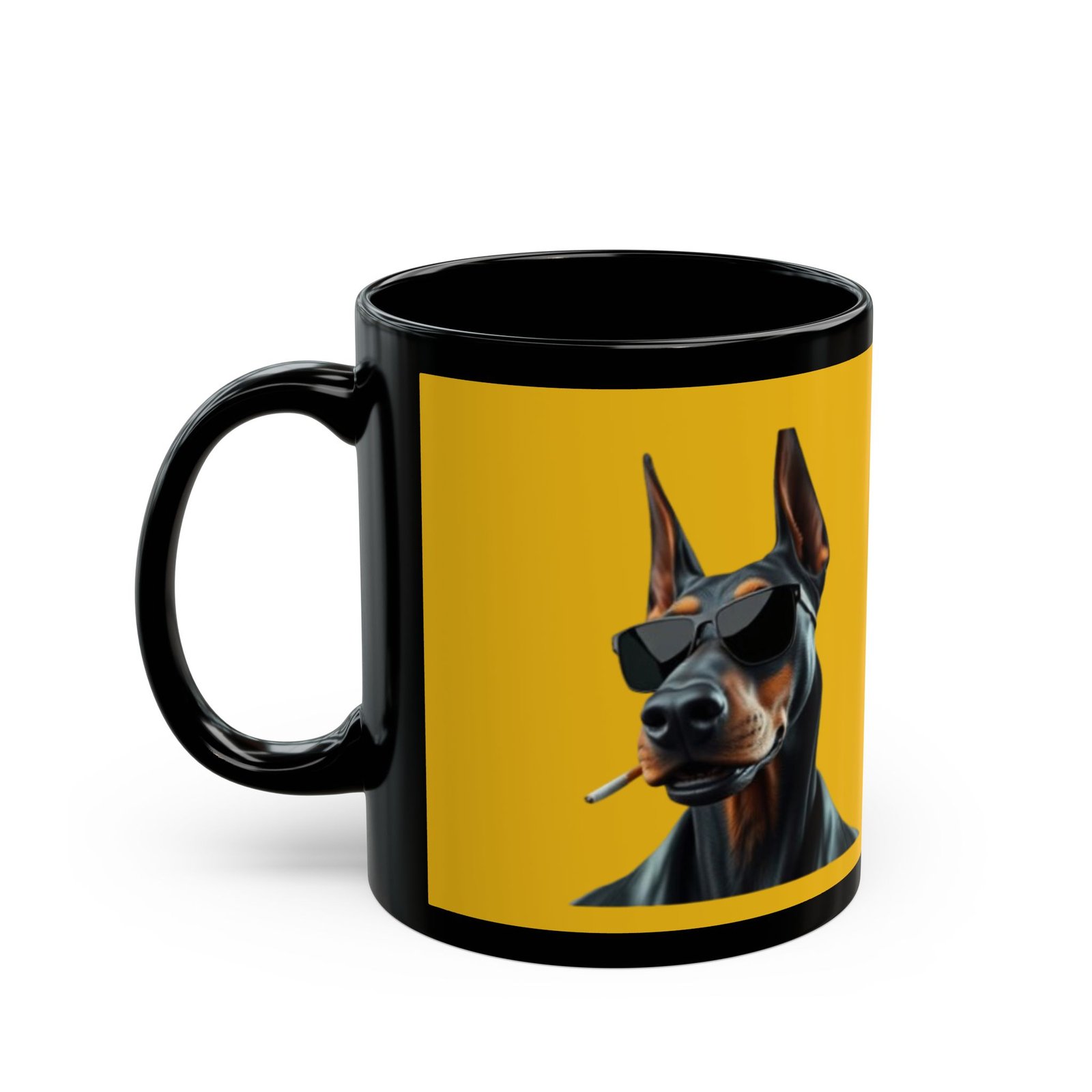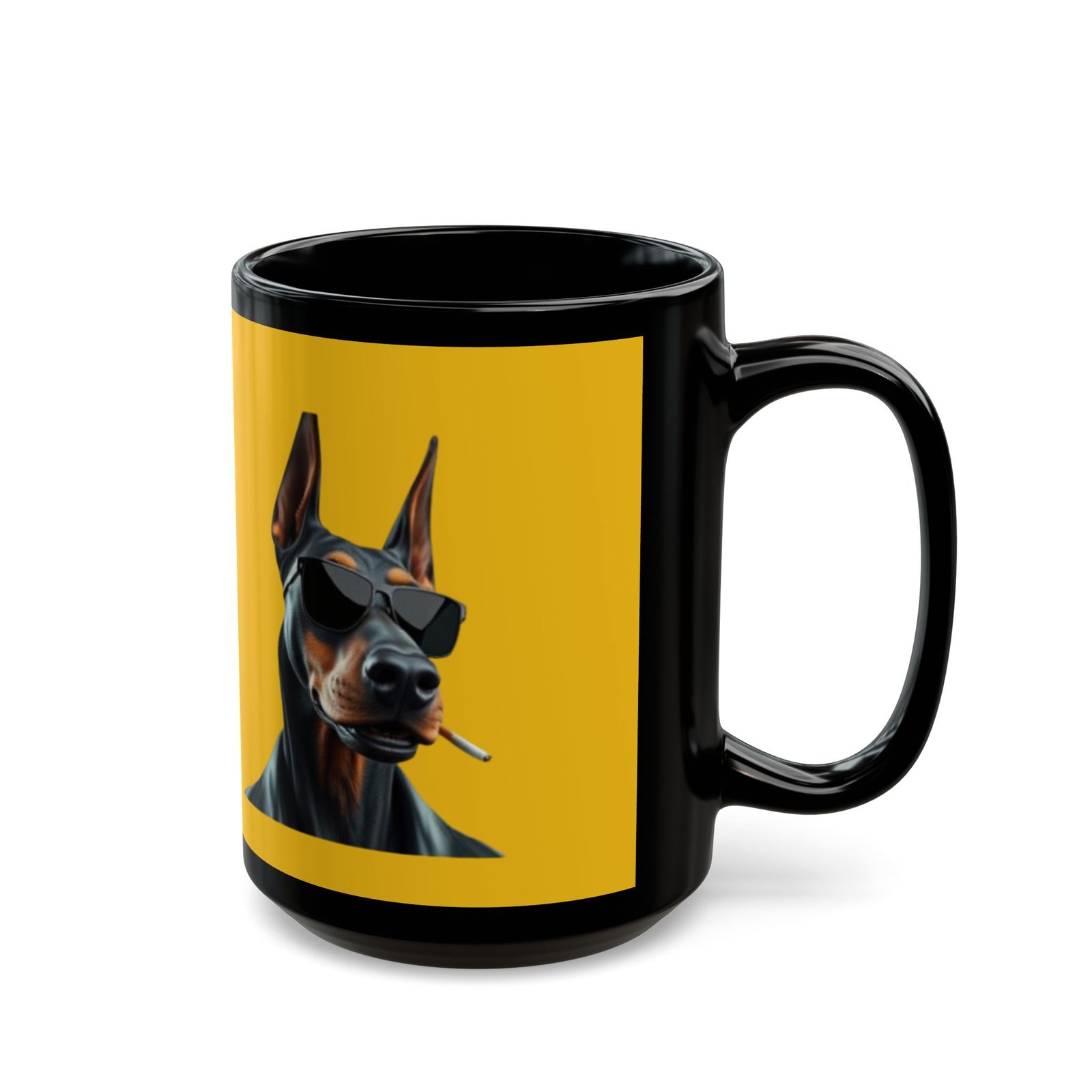 Doberman Cool Dog Mug | Coffee Cup, Dog Lover Gift, Pet Mom Mug, Unique Drinkware, Black Ceramic Cup