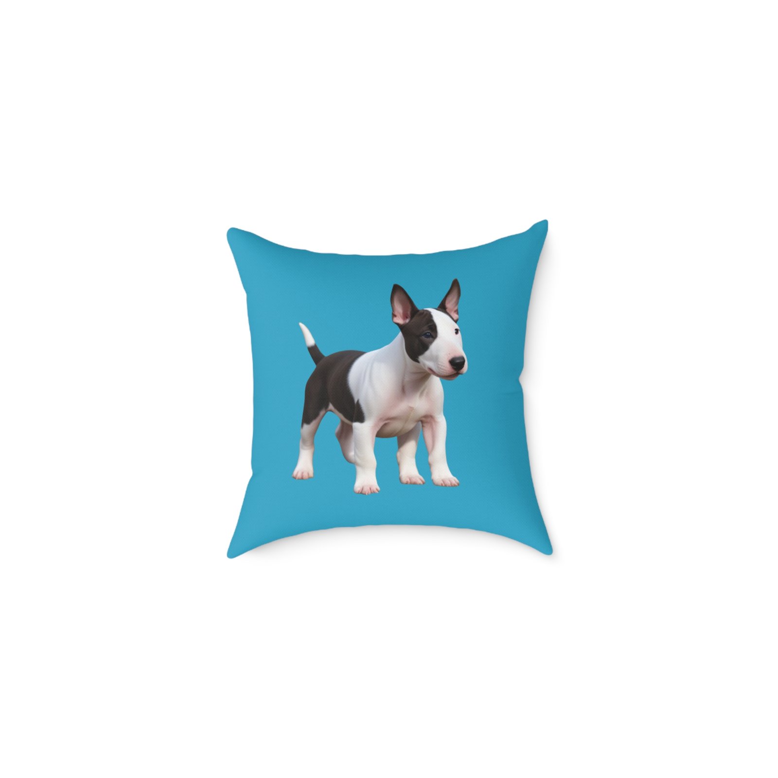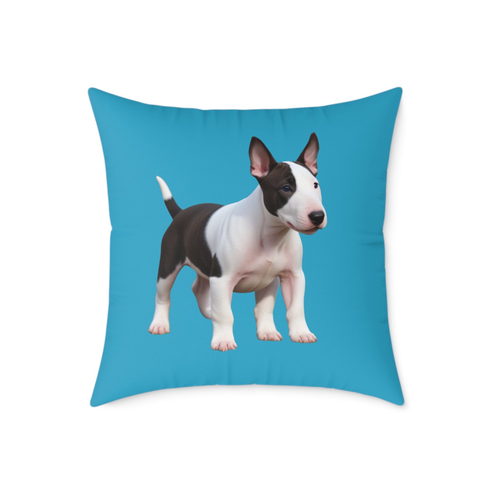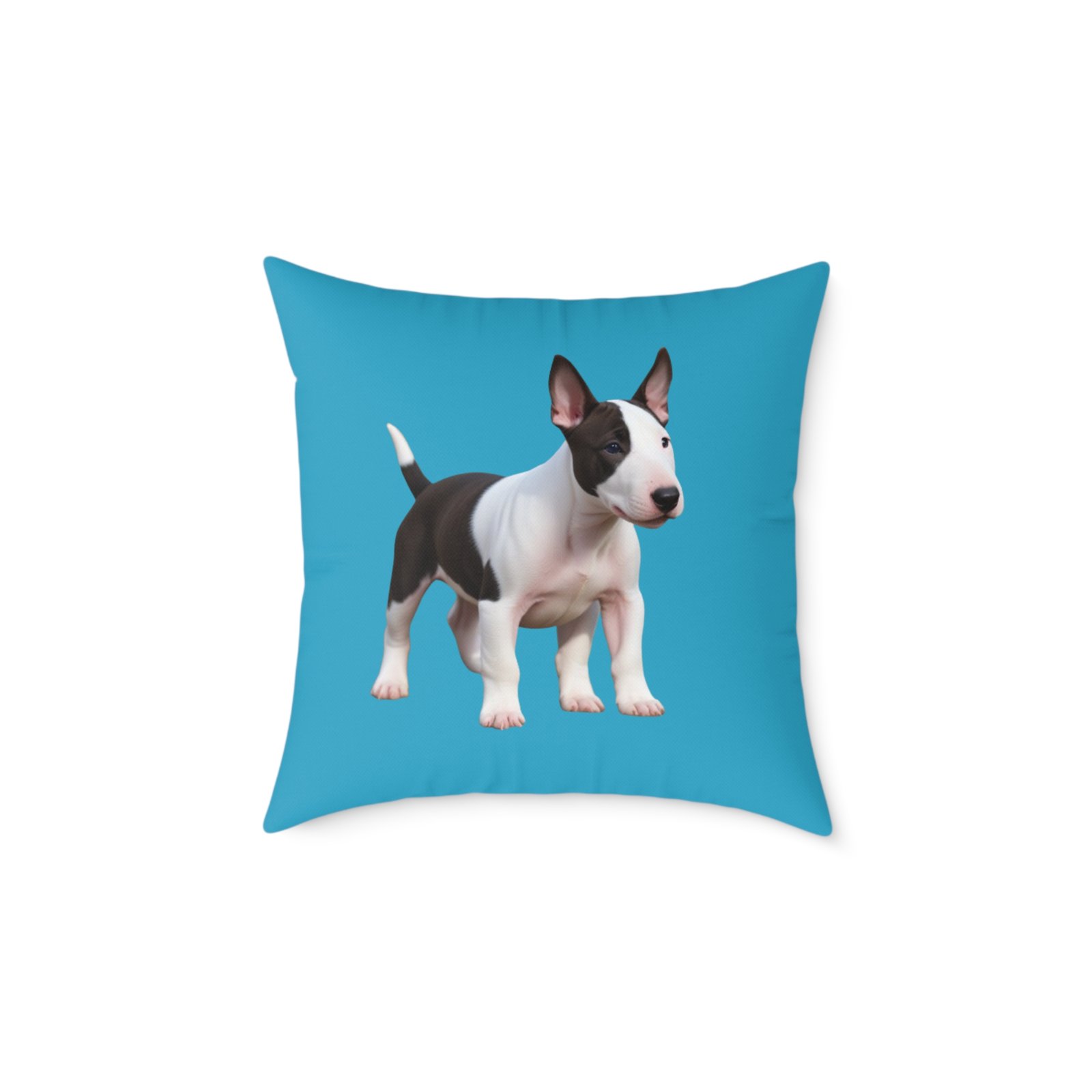 English Bull Terrier. Help uplift any home’s surroundings with customized polyester pillows. Featuring a concealed zipper that doesn’t show, each pillow comes already filled with 100% polyester filling. Add your art and help create unique home decorations that capture the eye of guests and cheer the home owner’s mood.