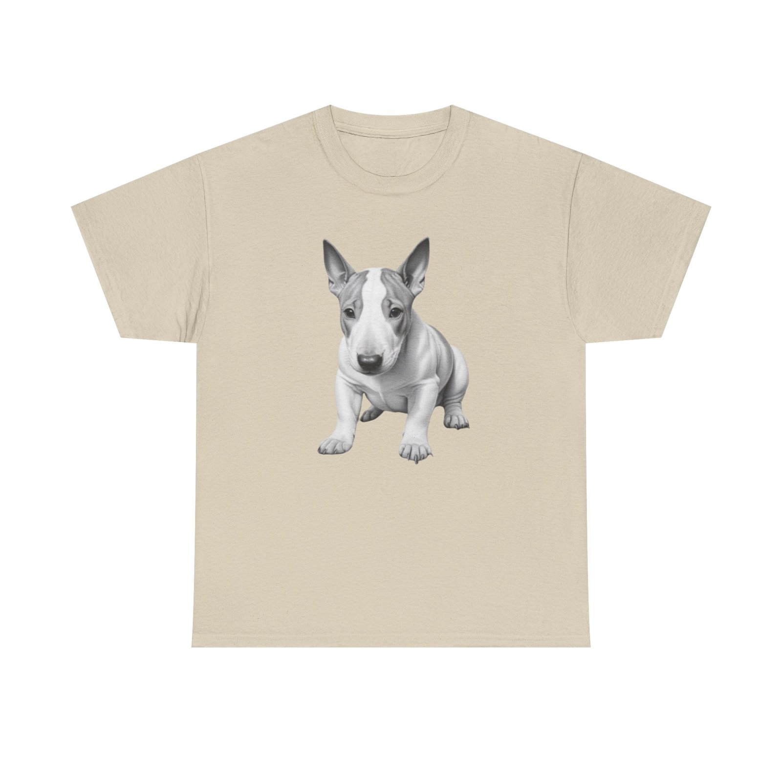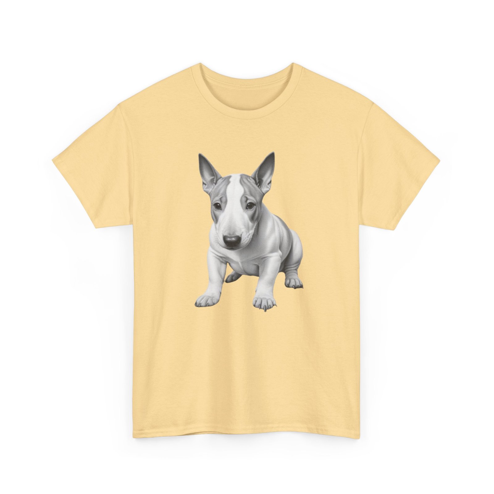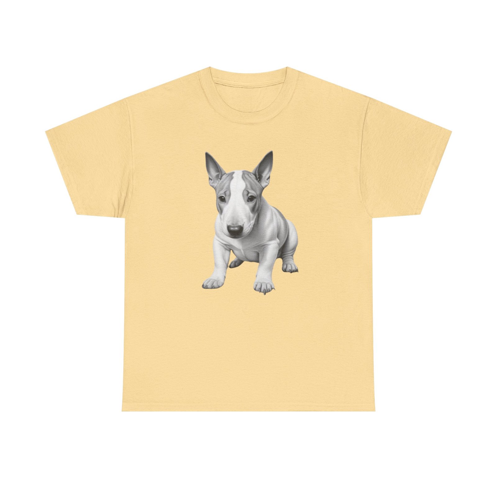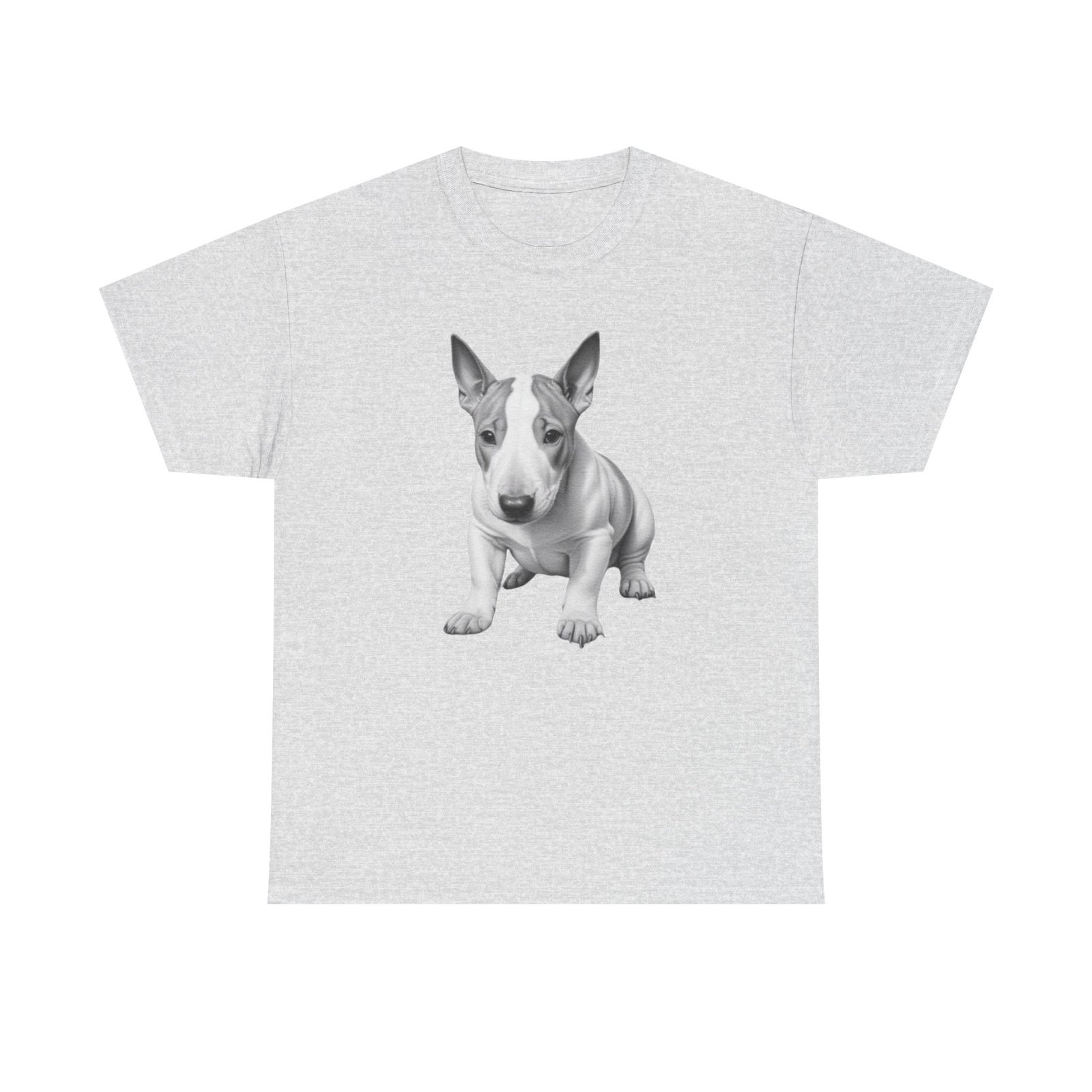 English Bull Terrier. The unisex heavy cotton tee is the basic staple of any wardrobe. It is the foundation upon which casual fashion grows. All it needs is a personalized design to elevate things to profitability. The specially spun fibers provide a smooth surface for premium printing vividity and sharpness. No side seams mean there are no itchy interruptions under the arms. The shoulders have tape for improved durability.