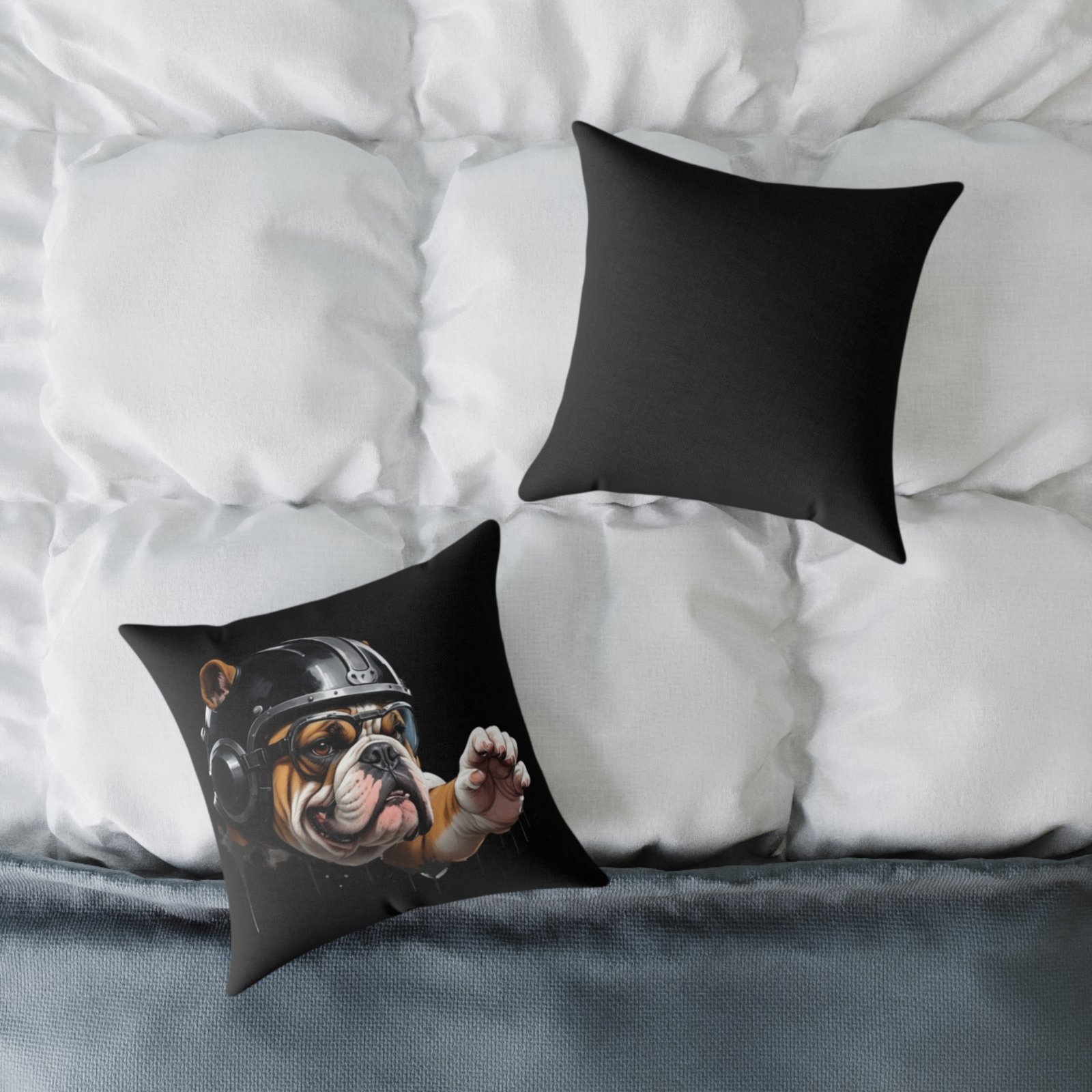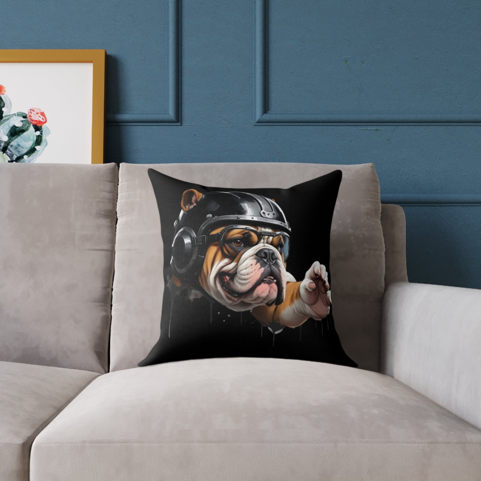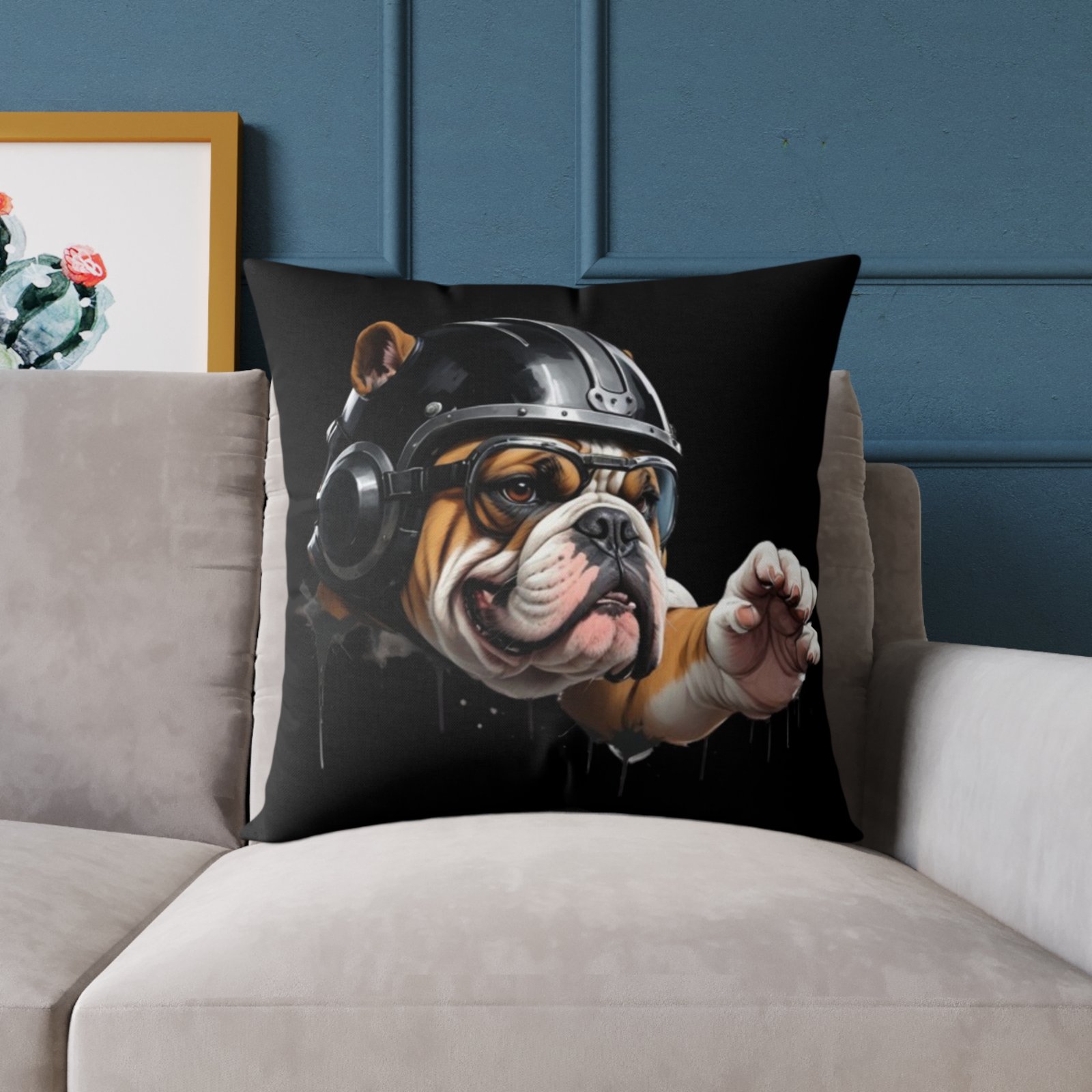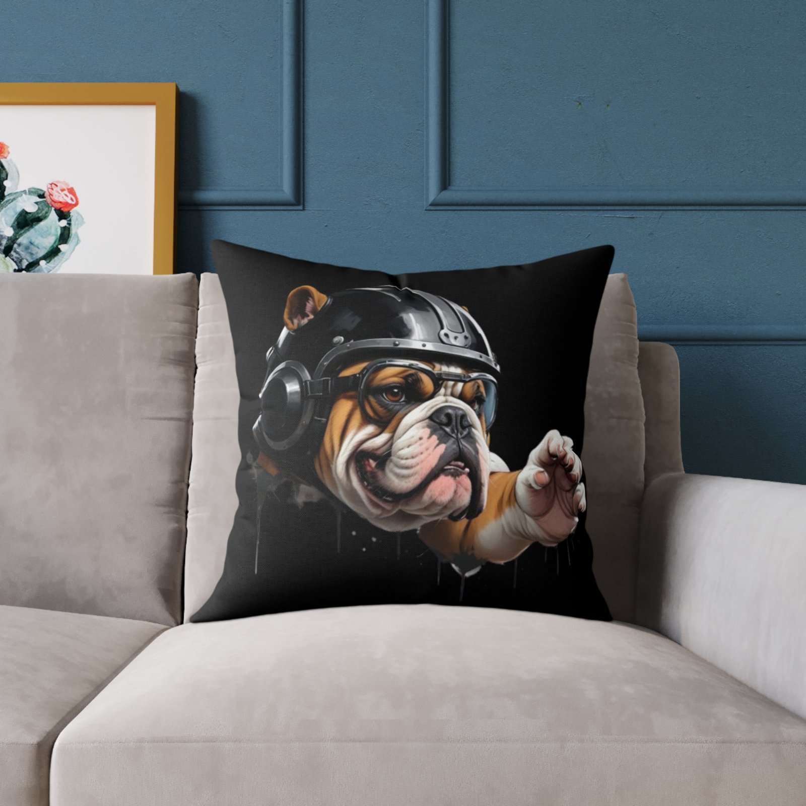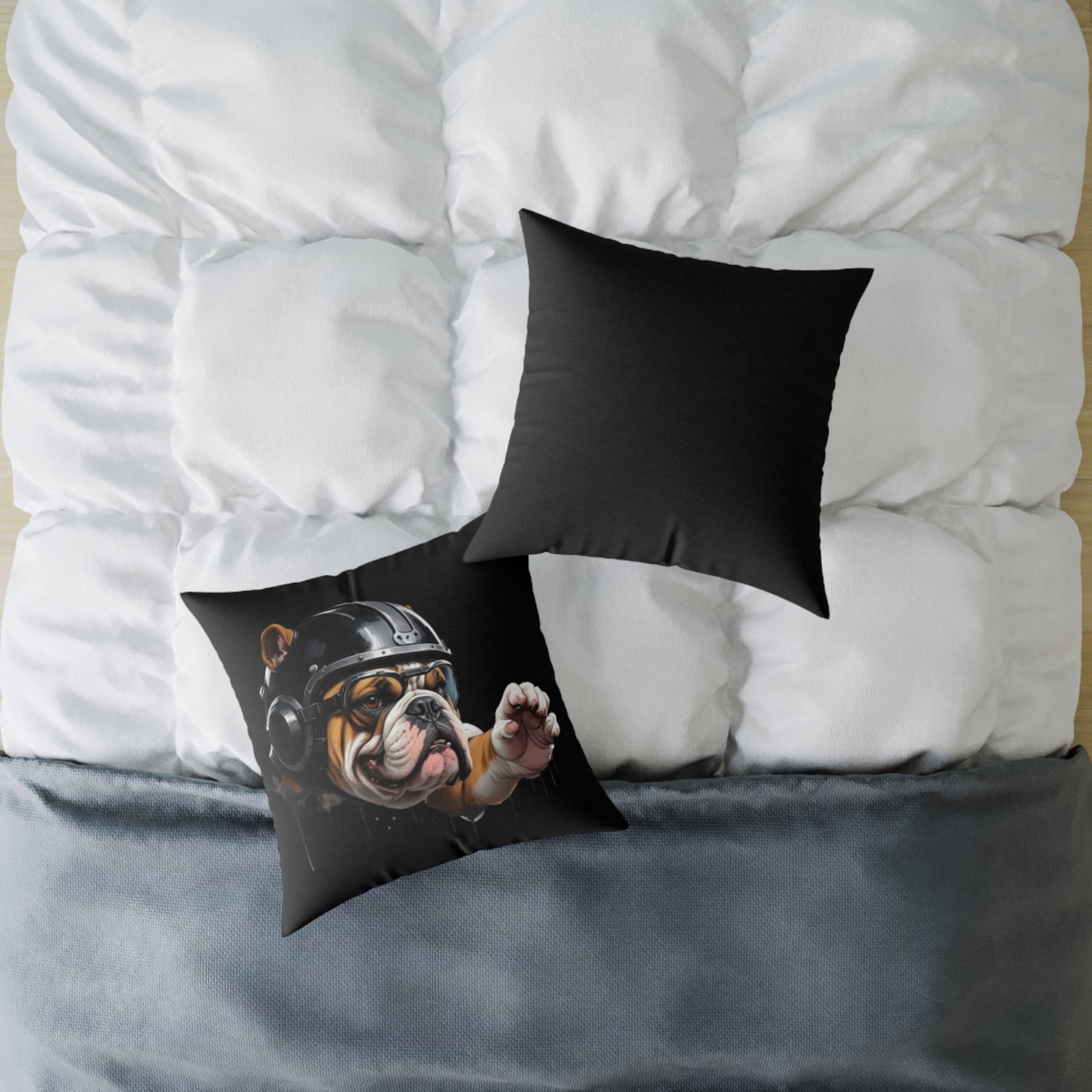 Flight Of The Bulldog Square Poly Canvas Pillow