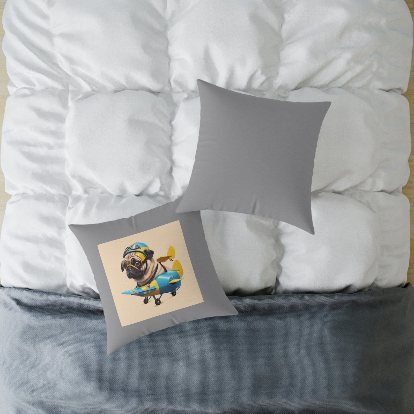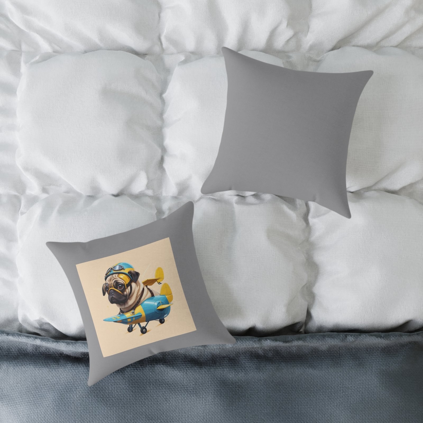 Pug Pup Cartoon Funny Cushion Dog 08. Puppy Help uplift any home’s surroundings with customized polyester pillows. Featuring a concealed zipper that doesn’t show, each pillow comes already filled with 100% polyester filling. Add your art and help create unique home decorations that capture the eye of guests and cheer the home owner’s mood. 53
