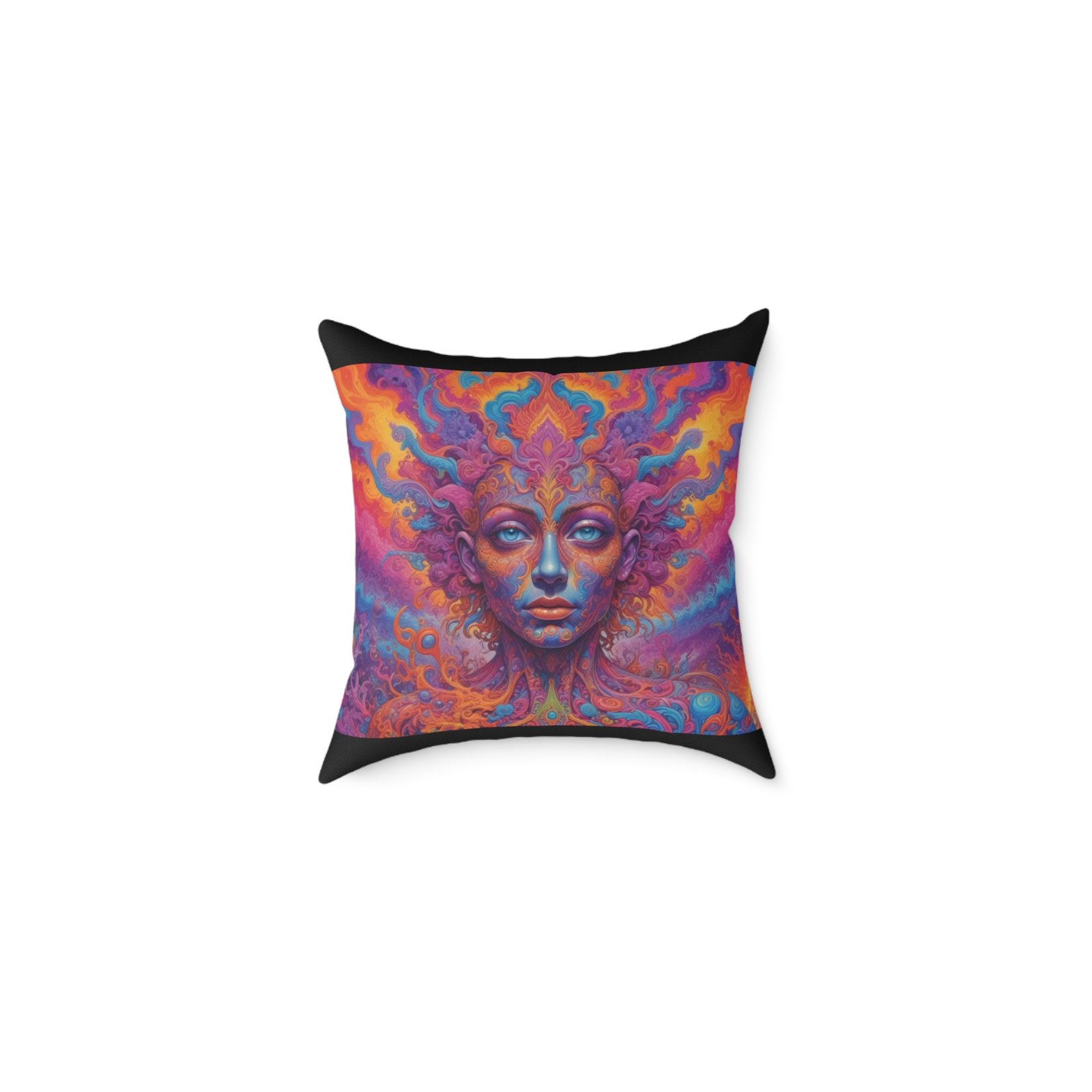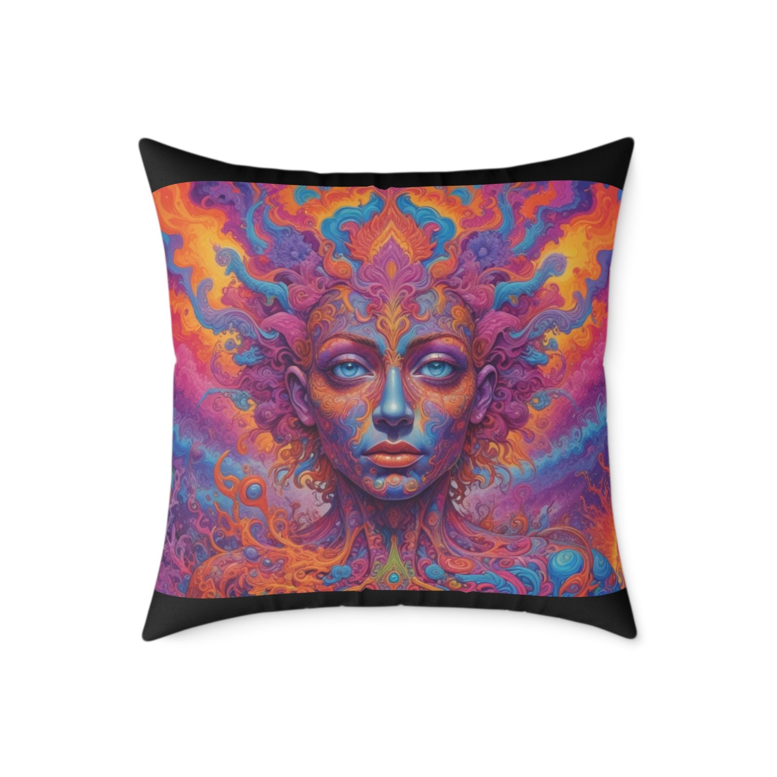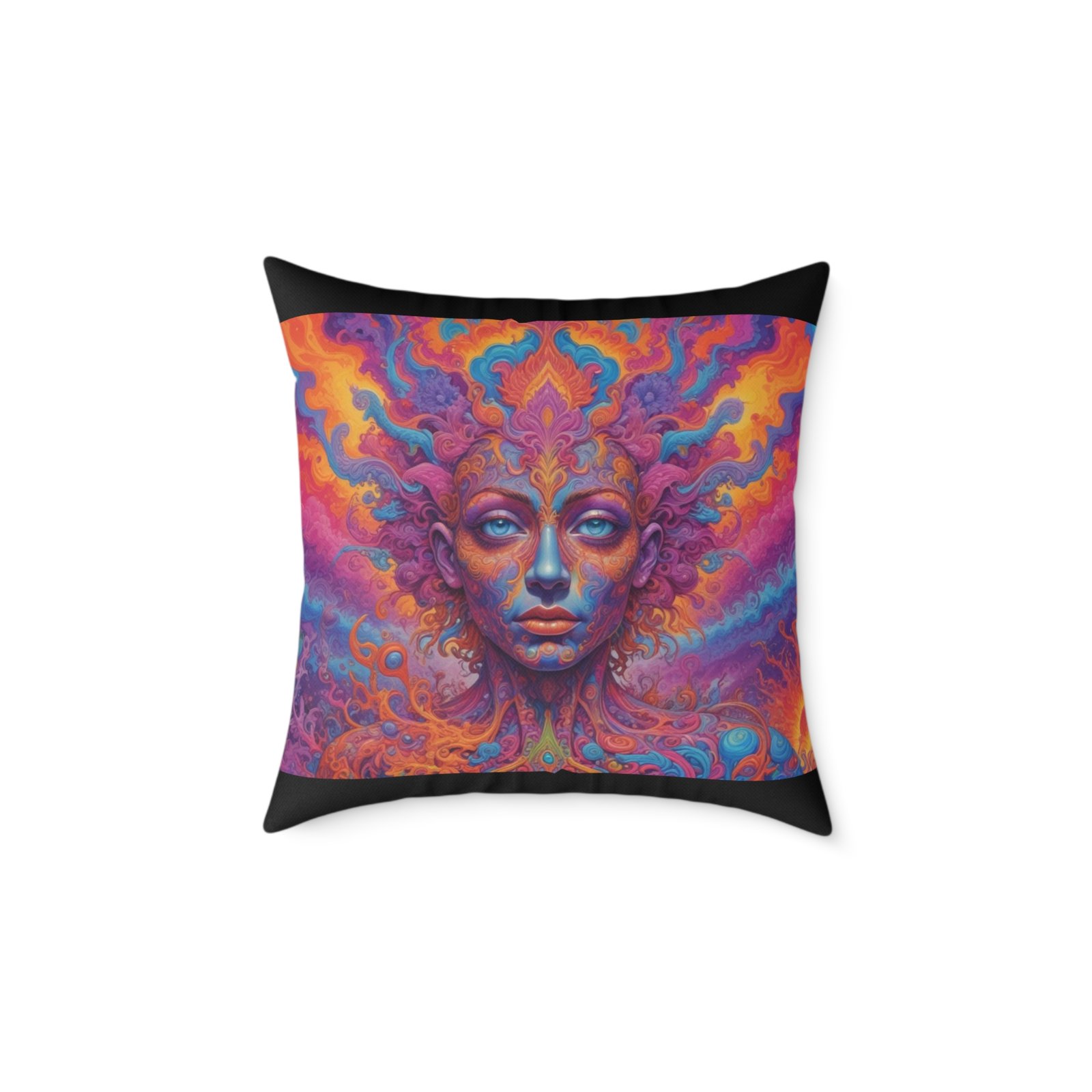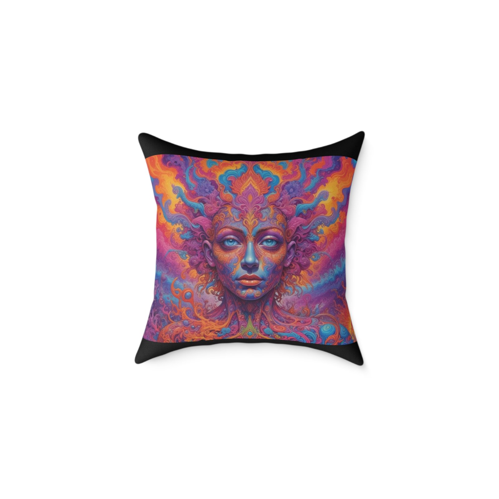 Psychadelic .Help uplift any home’s surroundings with customized polyester pillows. Featuring a concealed zipper that doesn’t show, each pillow comes already filled with 100% polyester filling. Add your art and help create unique home decorations that capture the eye of guests and cheer the home owner’s mood.