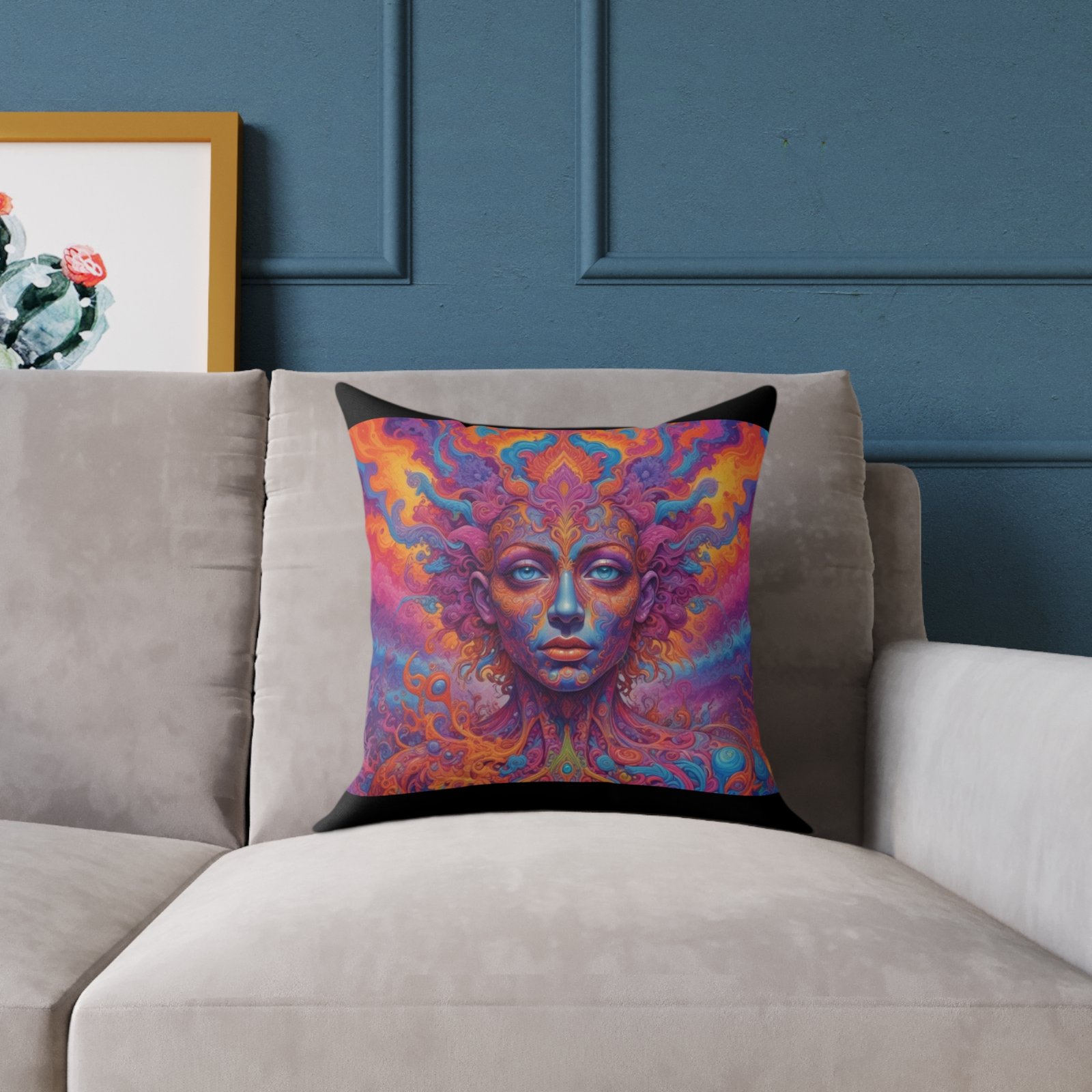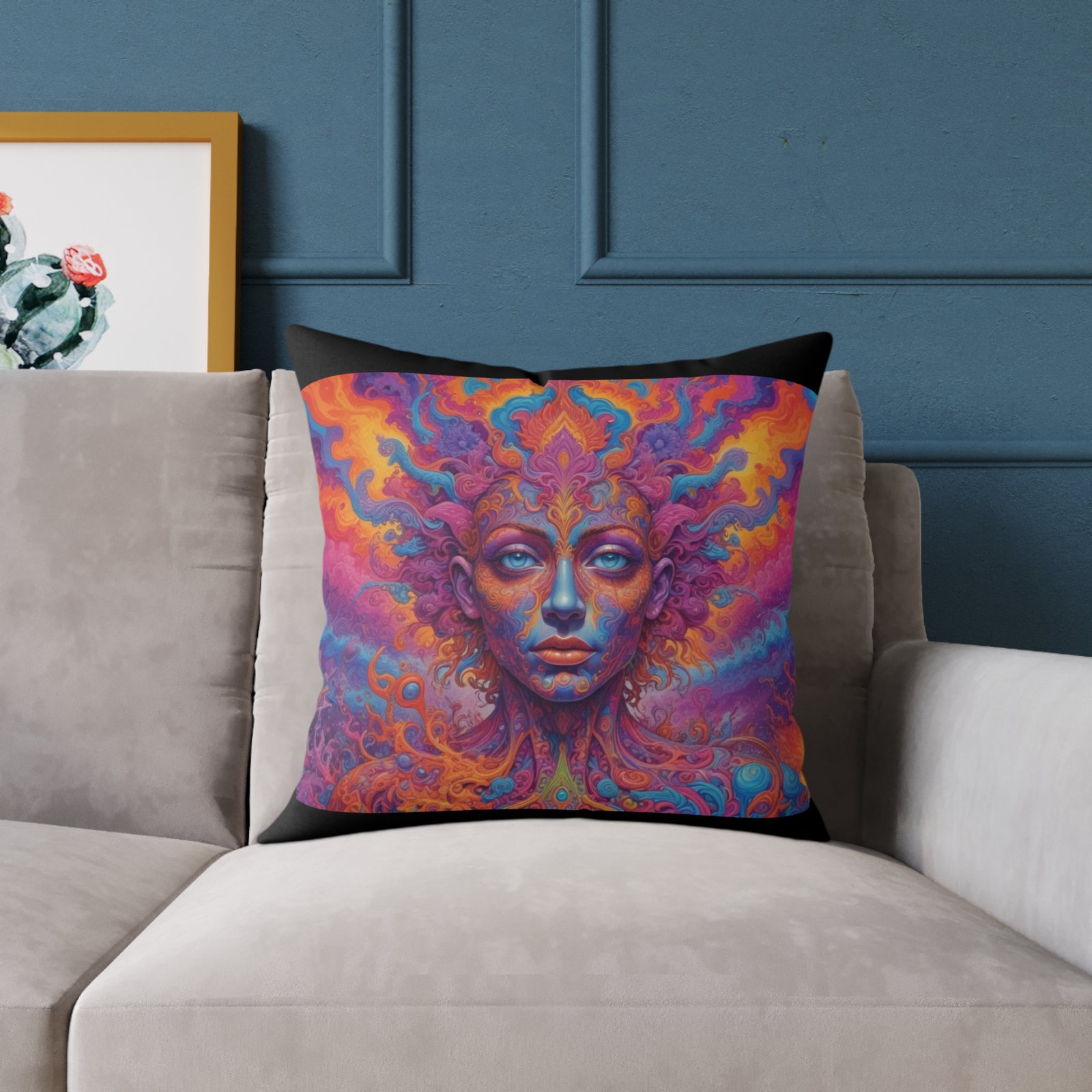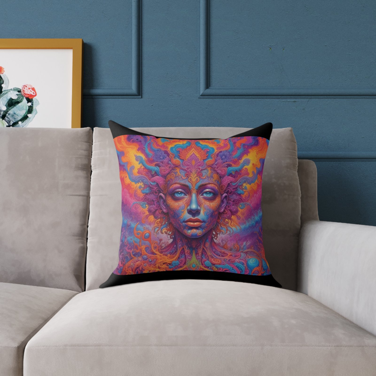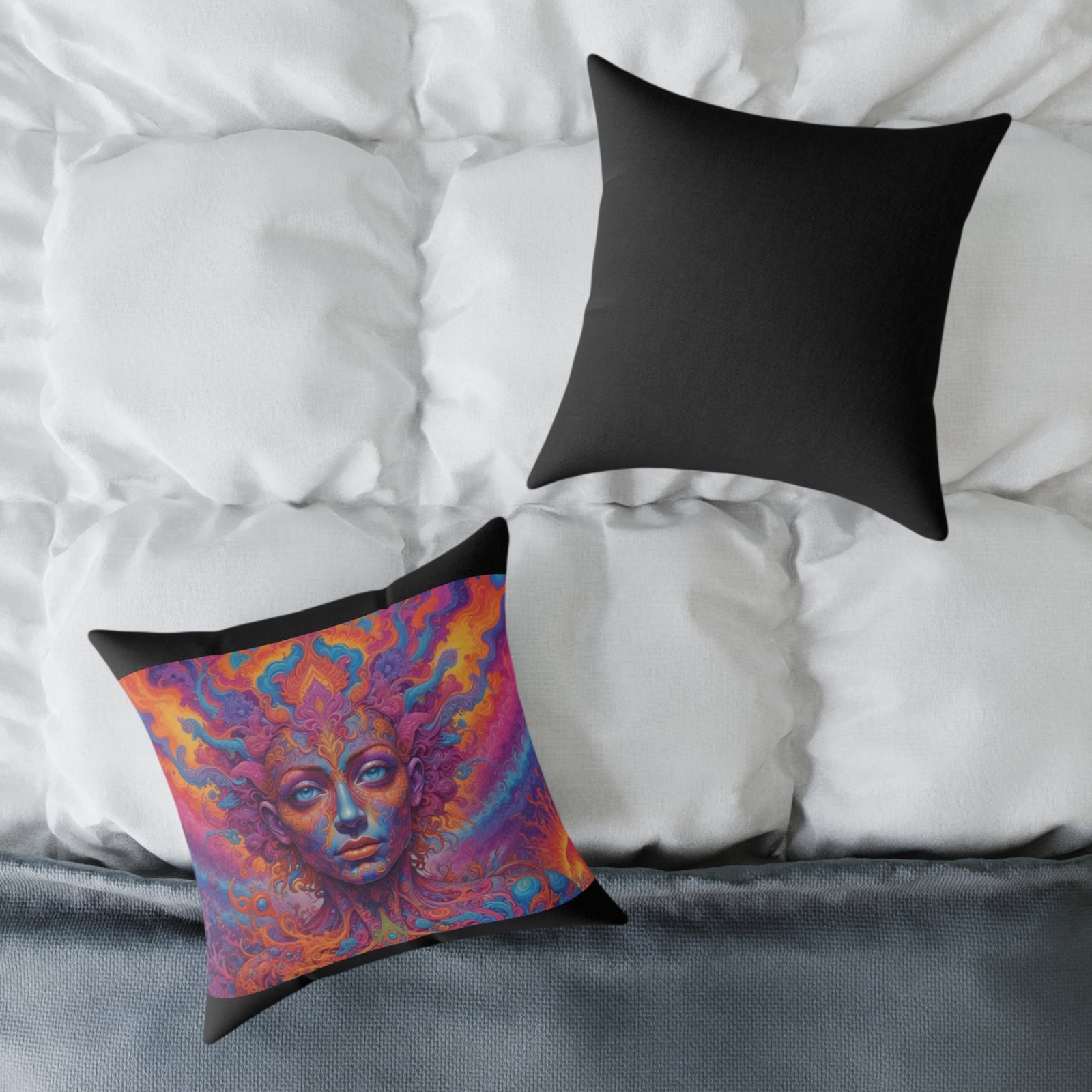 Psychadelic .Help uplift any home’s surroundings with customized polyester pillows. Featuring a concealed zipper that doesn’t show, each pillow comes already filled with 100% polyester filling. Add your art and help create unique home decorations that capture the eye of guests and cheer the home owner’s mood.