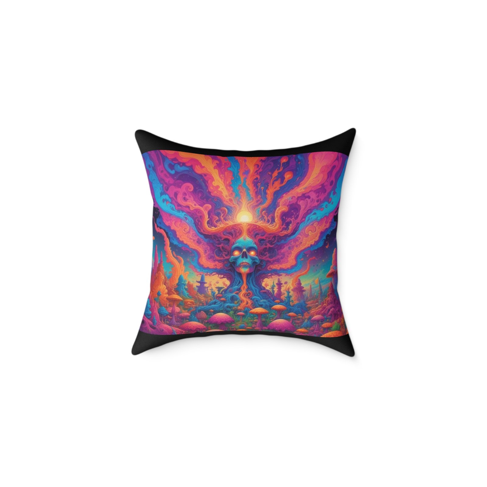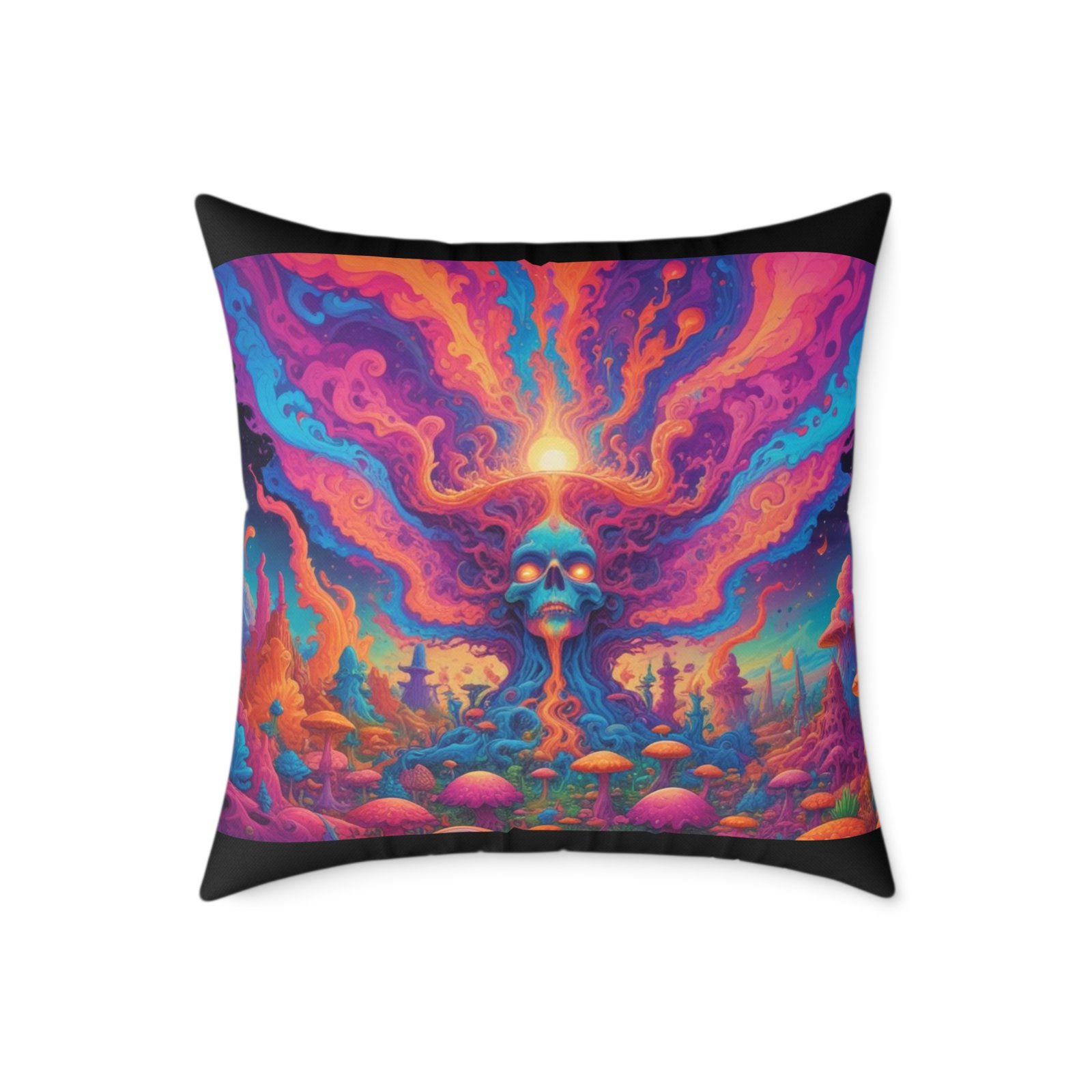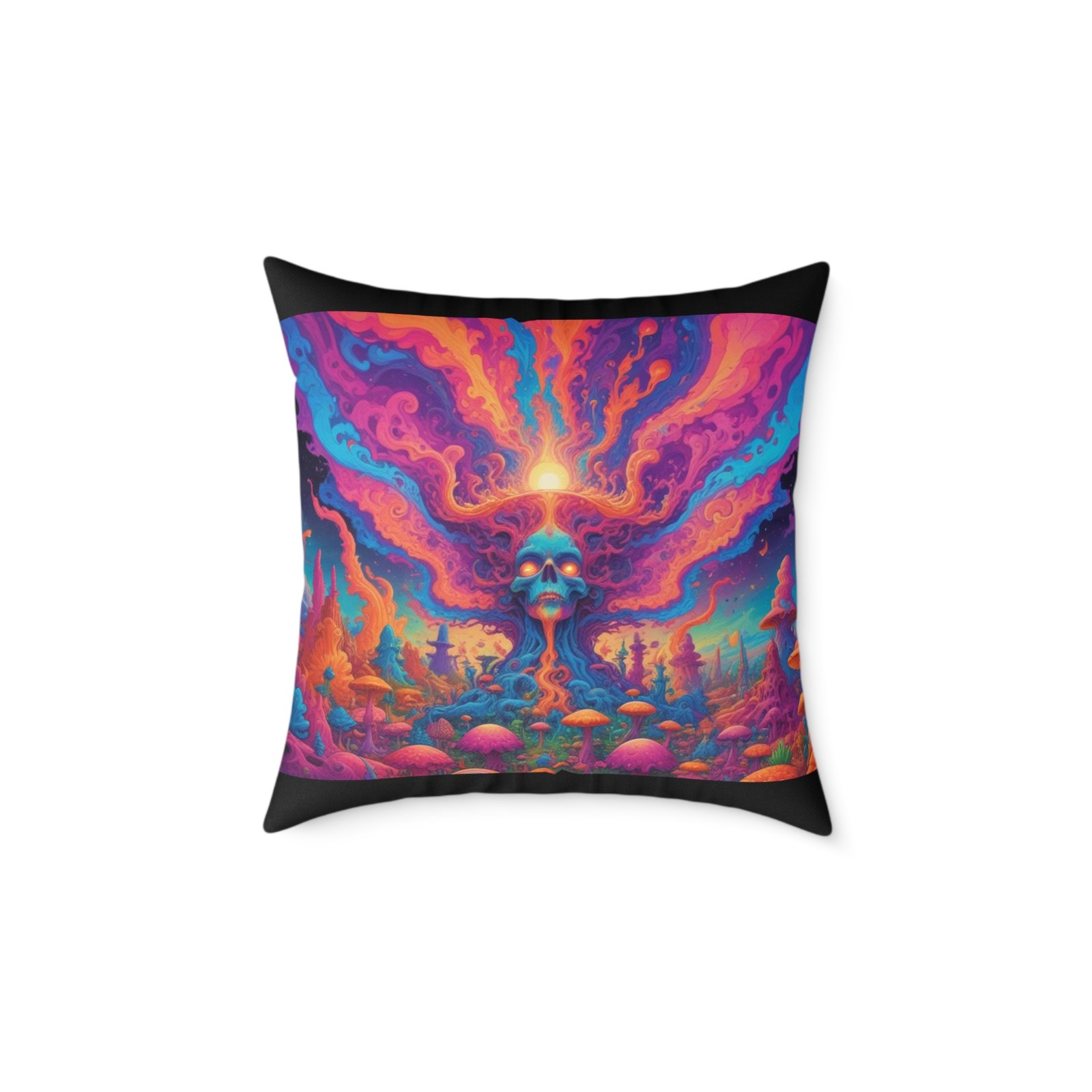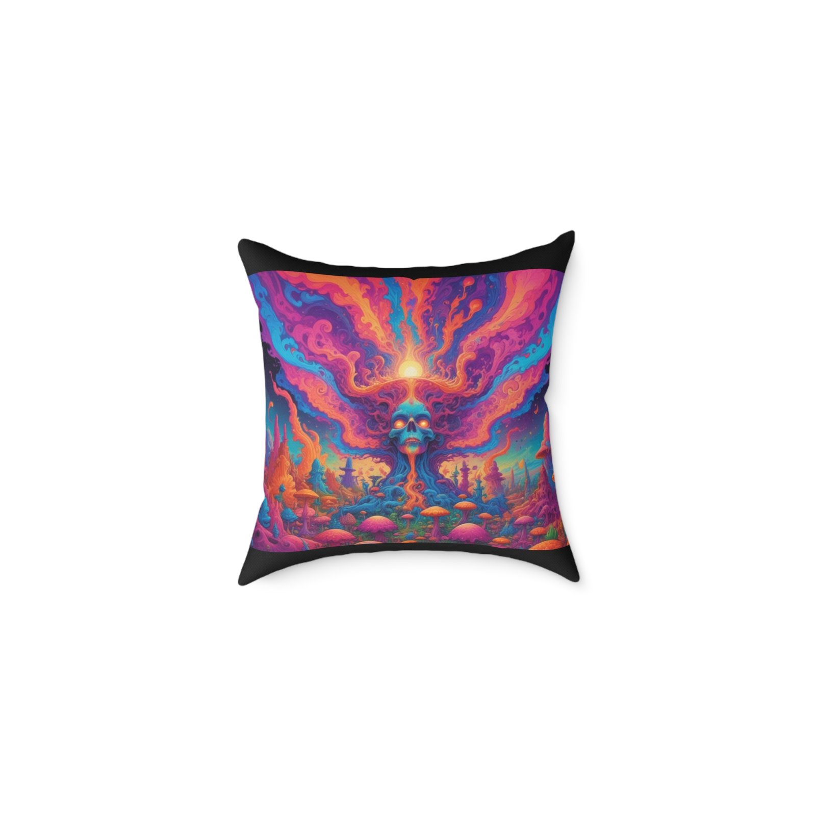 Psychadelic .Help uplift any home’s surroundings with customized polyester pillows. Featuring a concealed zipper that doesn’t show, each pillow comes already filled with 100% polyester filling. Add your art and help create unique home decorations that capture the eye of guests and cheer the home owner’s mood.