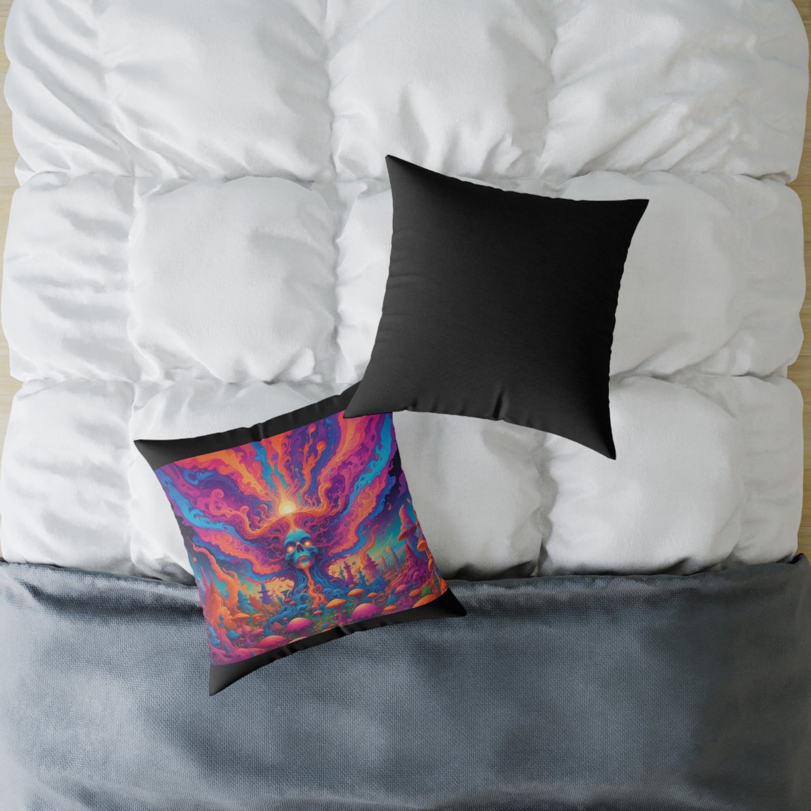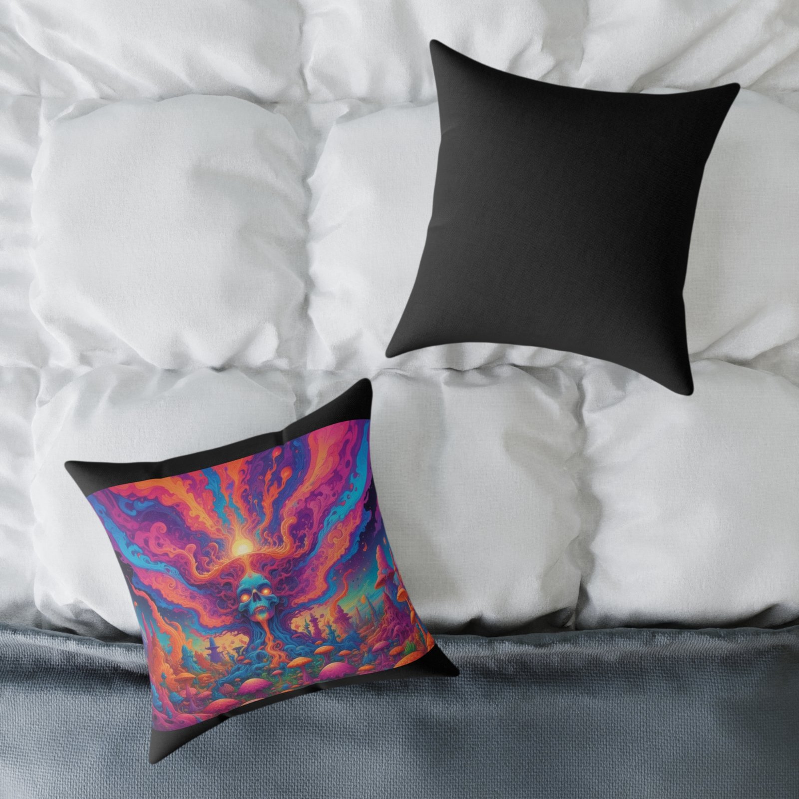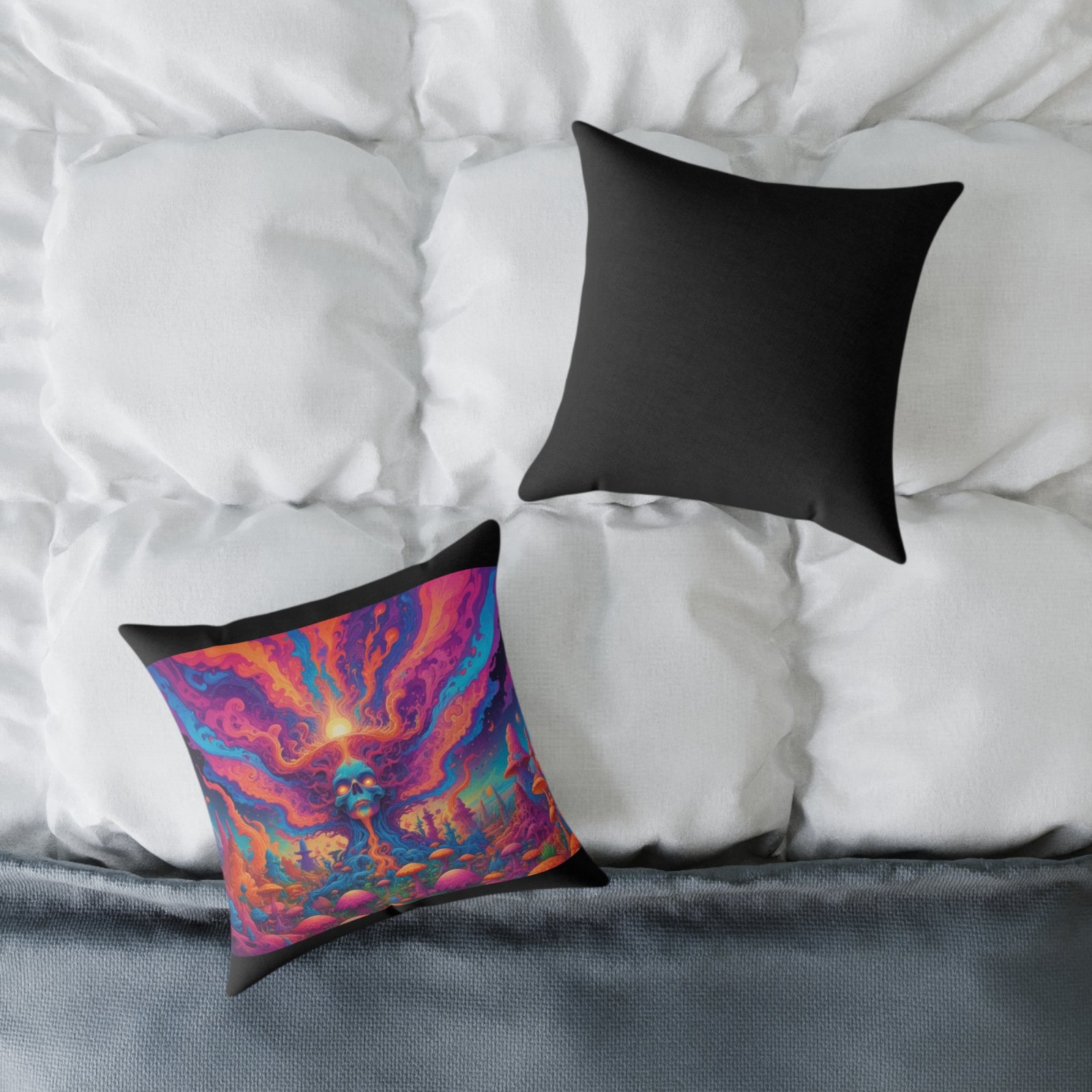 Psychadelic .Help uplift any home’s surroundings with customized polyester pillows. Featuring a concealed zipper that doesn’t show, each pillow comes already filled with 100% polyester filling. Add your art and help create unique home decorations that capture the eye of guests and cheer the home owner’s mood.