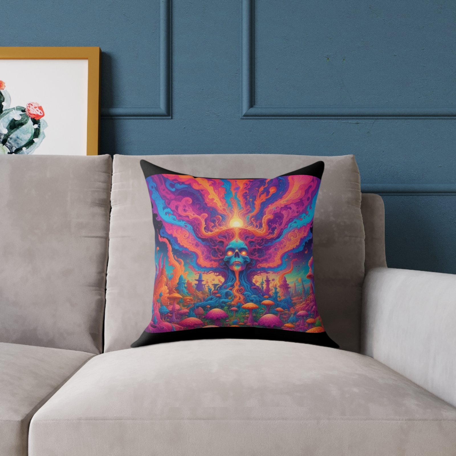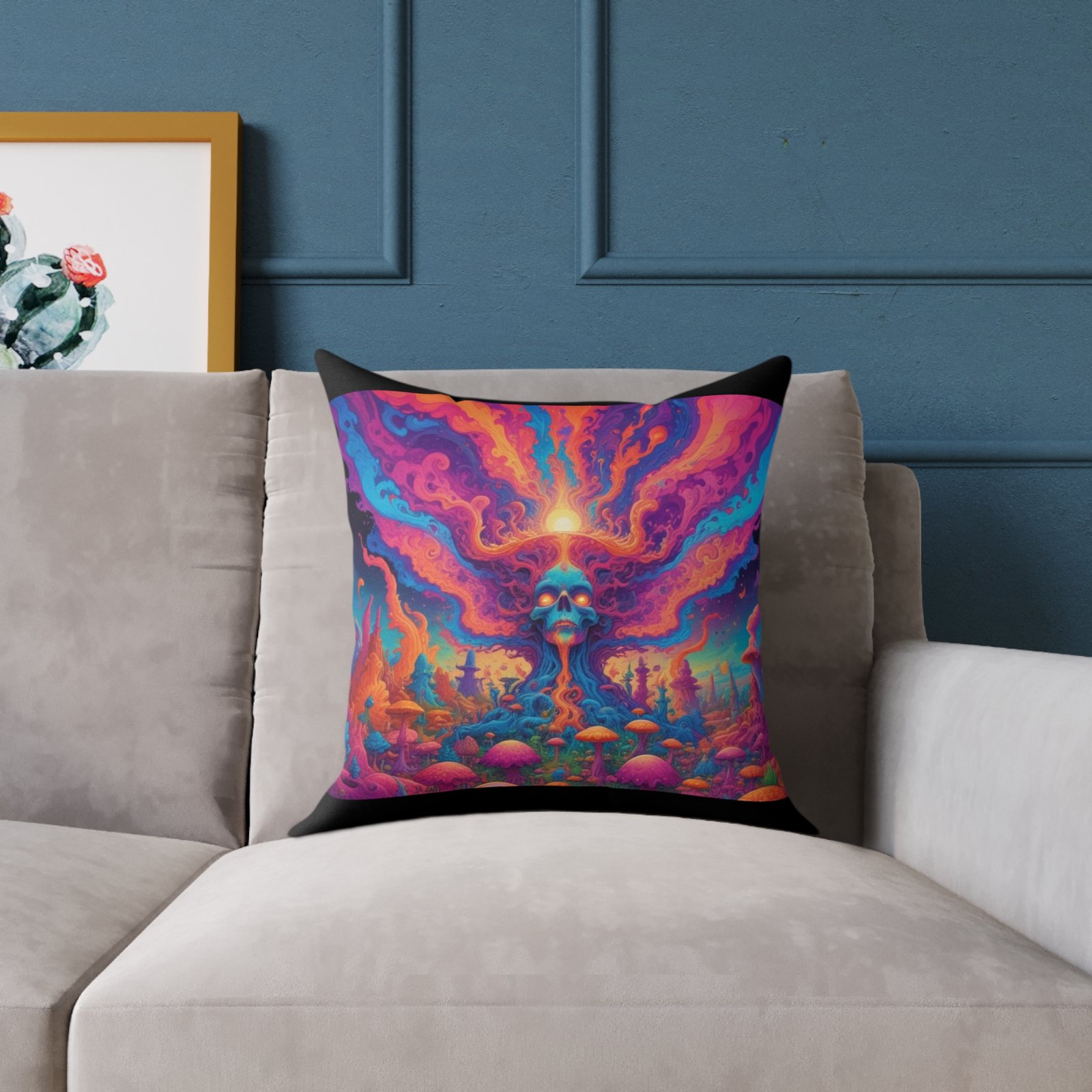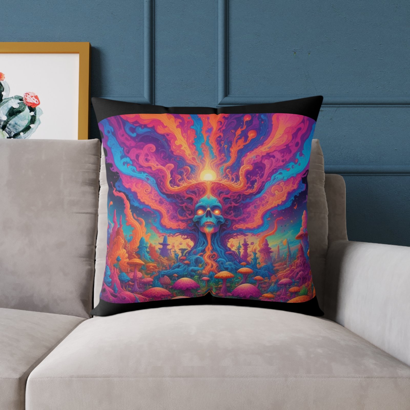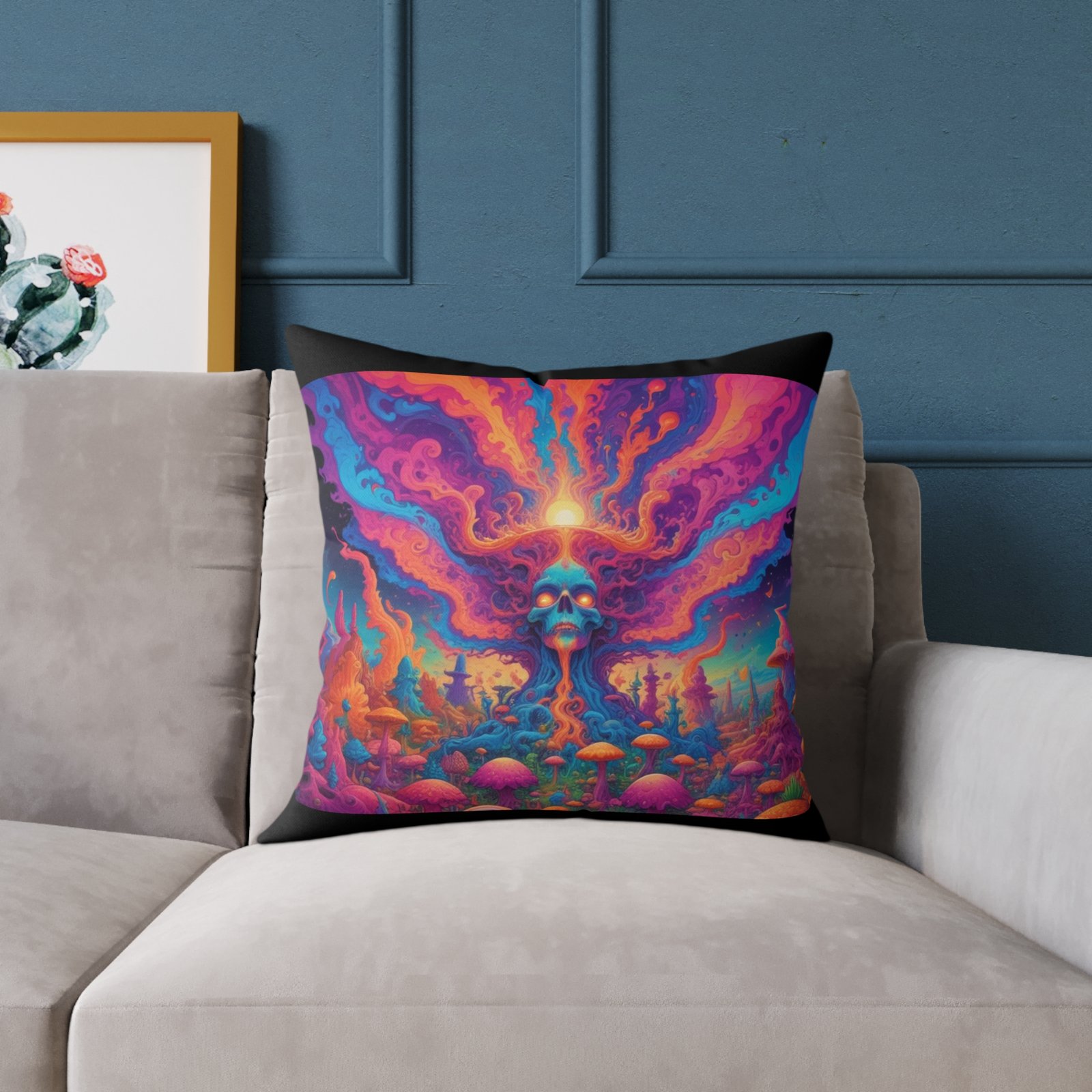 Psychadelic .Help uplift any home’s surroundings with customized polyester pillows. Featuring a concealed zipper that doesn’t show, each pillow comes already filled with 100% polyester filling. Add your art and help create unique home decorations that capture the eye of guests and cheer the home owner’s mood.