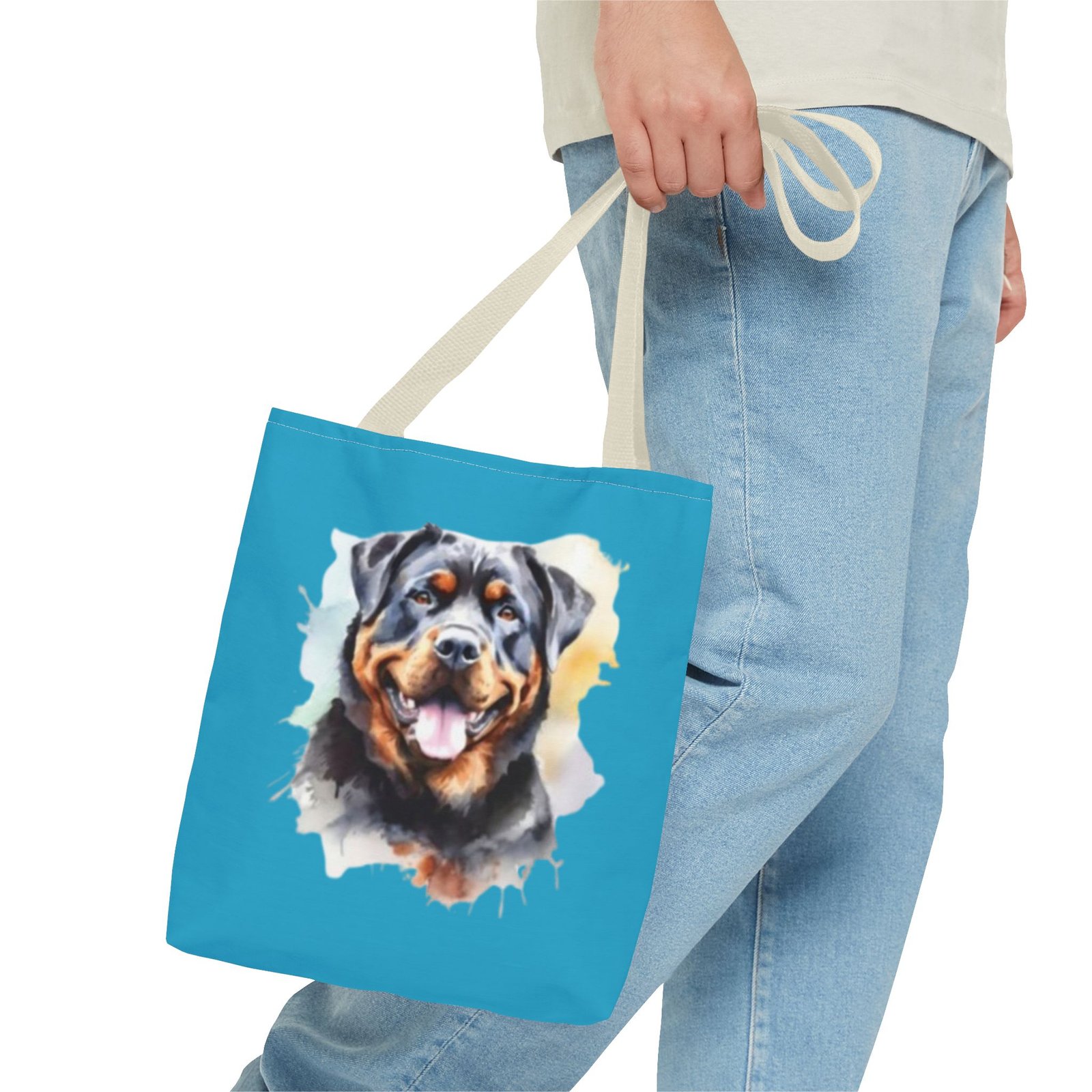 Rottweiler Dog .This stylish Tote Bag is perfect for anyone on the go. Its strong and durable design makes it an ideal companion for daily errands, shopping trips, or beach days. The vibrant print adds a touch of personality, making it a conversation starter. It fits seamlessly into any lifestyle—great for students, moms, or anyone who loves to stay organized. Celebrate special occasions such as birthdays, holidays, or just treat yourself with a practical accessory that stands out!