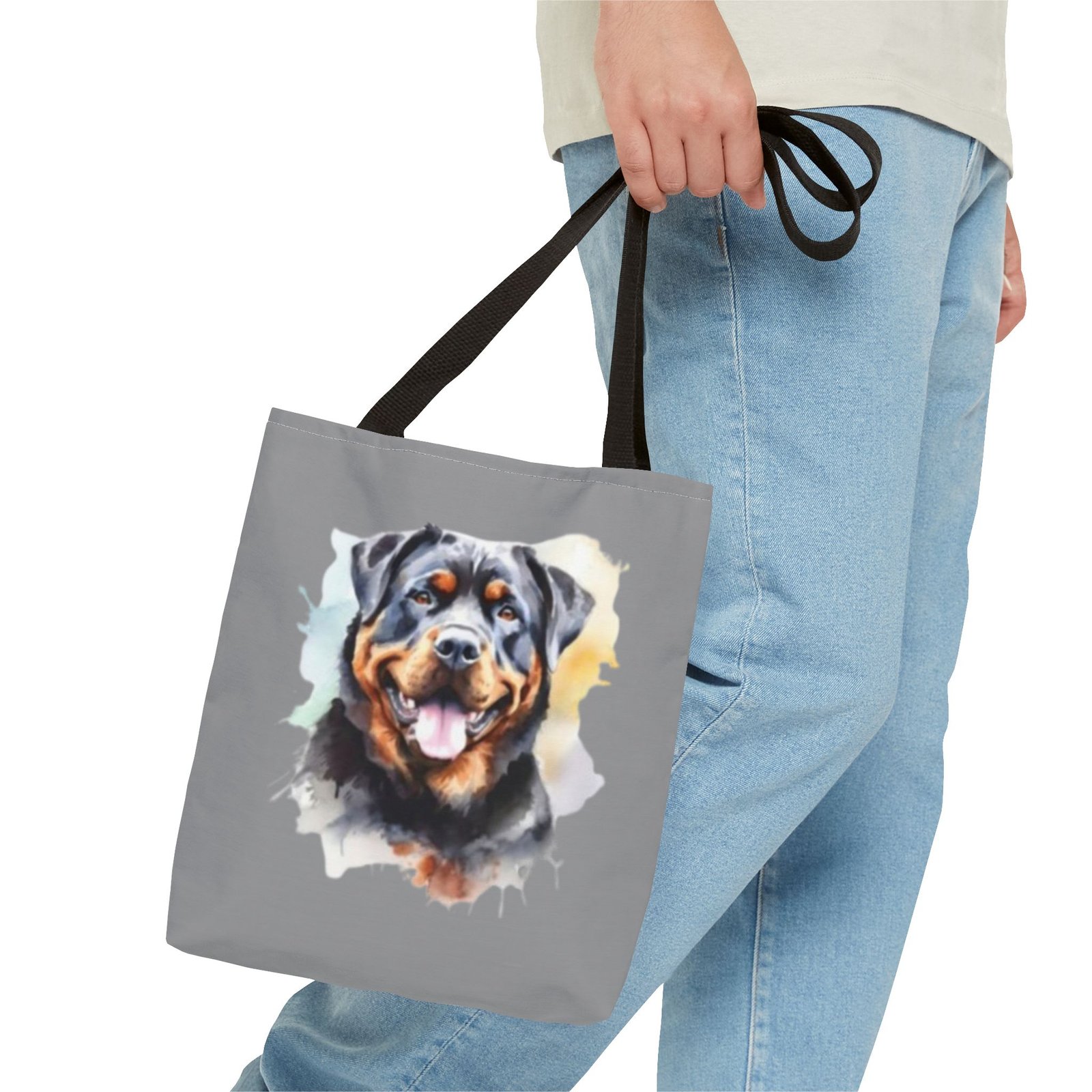 Rottweiler Dog .This stylish Tote Bag is perfect for anyone on the go. Its strong and durable design makes it an ideal companion for daily errands, shopping trips, or beach days. The vibrant print adds a touch of personality, making it a conversation starter. It fits seamlessly into any lifestyle—great for students, moms, or anyone who loves to stay organized. Celebrate special occasions such as birthdays, holidays, or just treat yourself with a practical accessory that stands out!