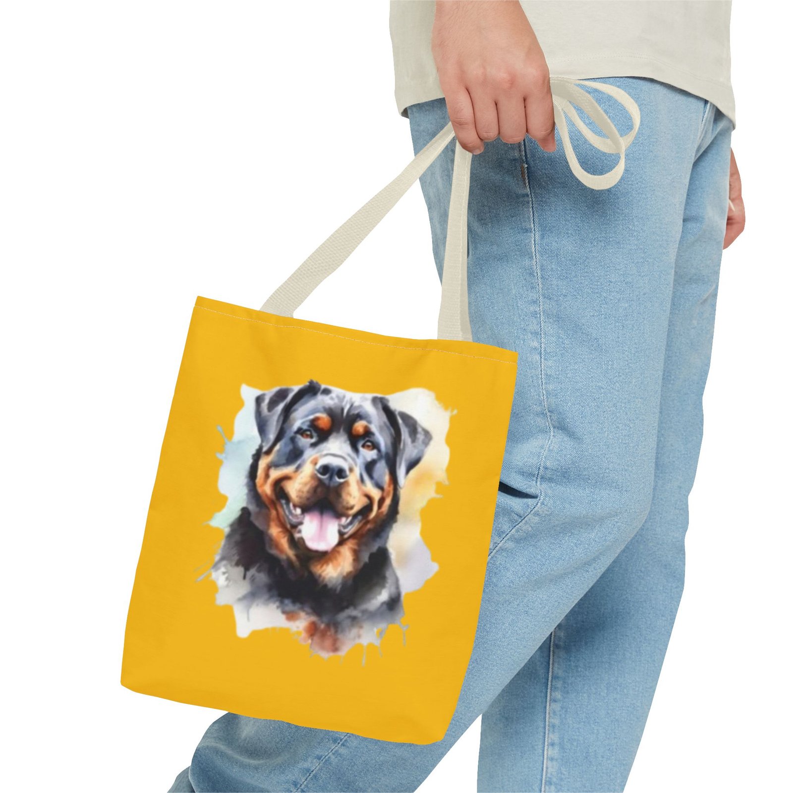 Rottweiler Dog .This stylish Tote Bag is perfect for anyone on the go. Its strong and durable design makes it an ideal companion for daily errands, shopping trips, or beach days. The vibrant print adds a touch of personality, making it a conversation starter. It fits seamlessly into any lifestyle—great for students, moms, or anyone who loves to stay organized. Celebrate special occasions such as birthdays, holidays, or just treat yourself with a practical accessory that stands out!