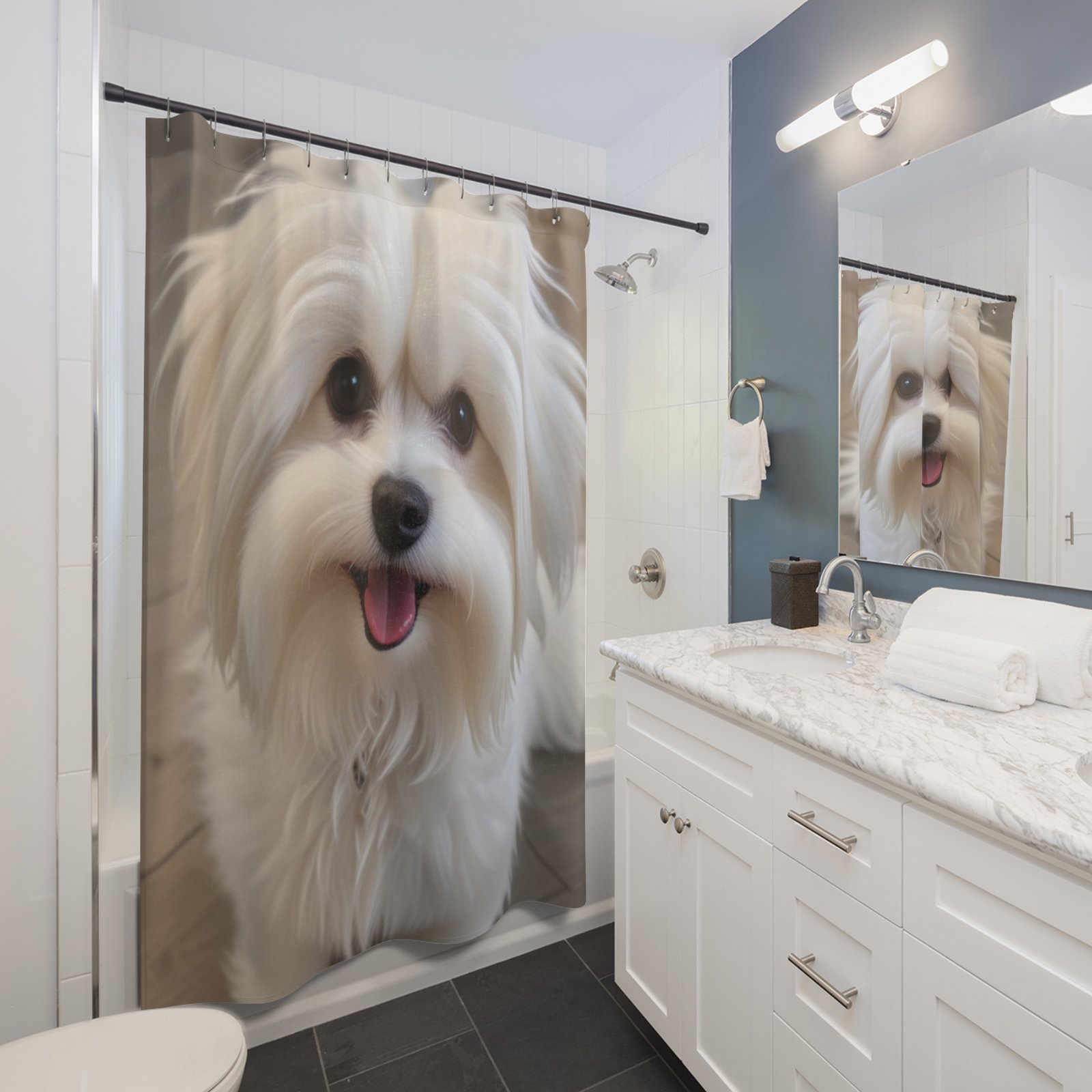 This shower curtain is perfect for Terrier lovers and canine pet enthusiasts. It adds a fun and playful touch to any bathroom, creating a cozy and welcoming atmosphere. Ideal for adults who enjoy furry friends as part of their decor. Great for holidays like National Dog Day or for everyday use.
