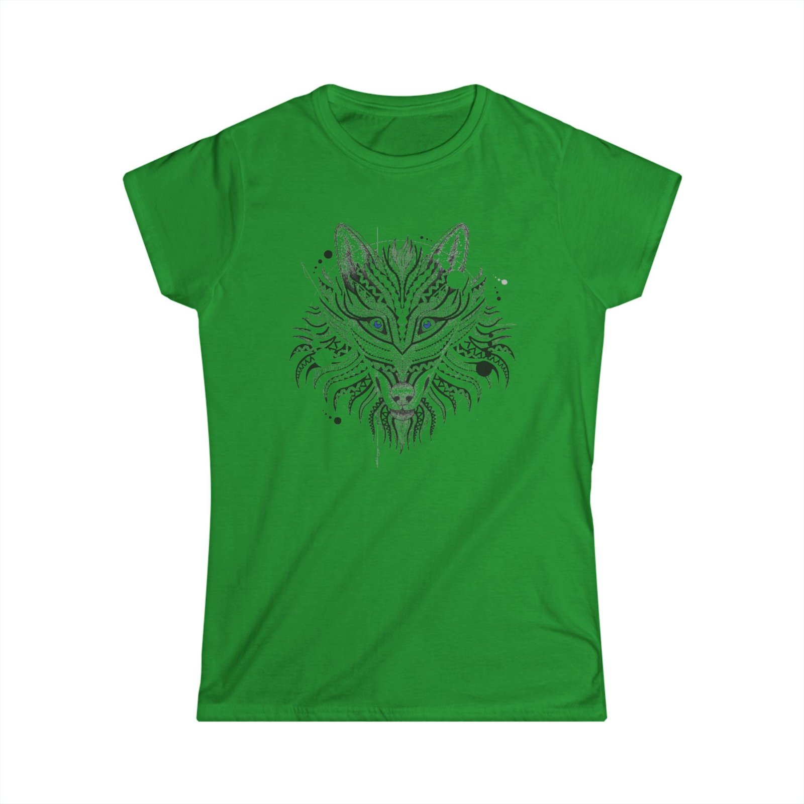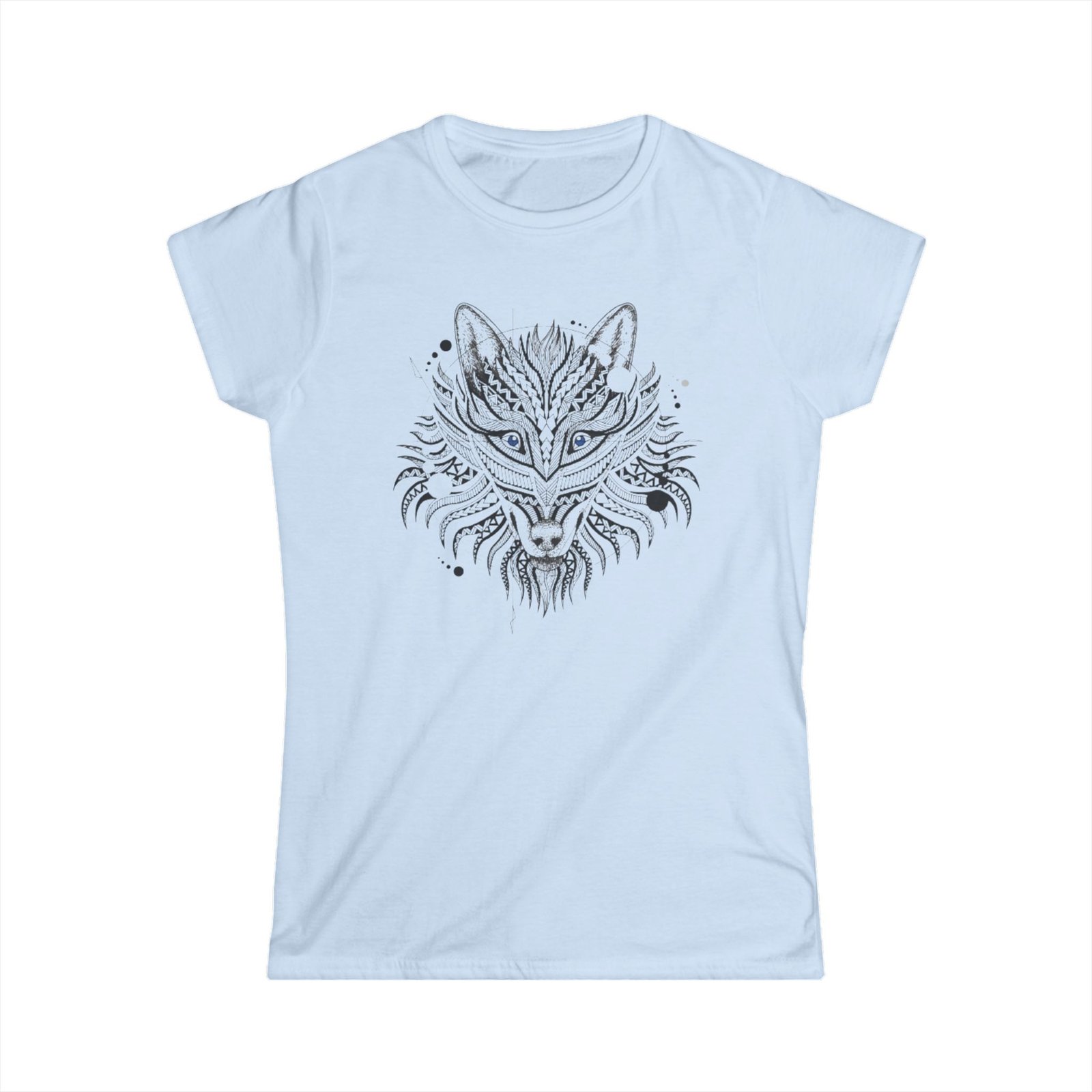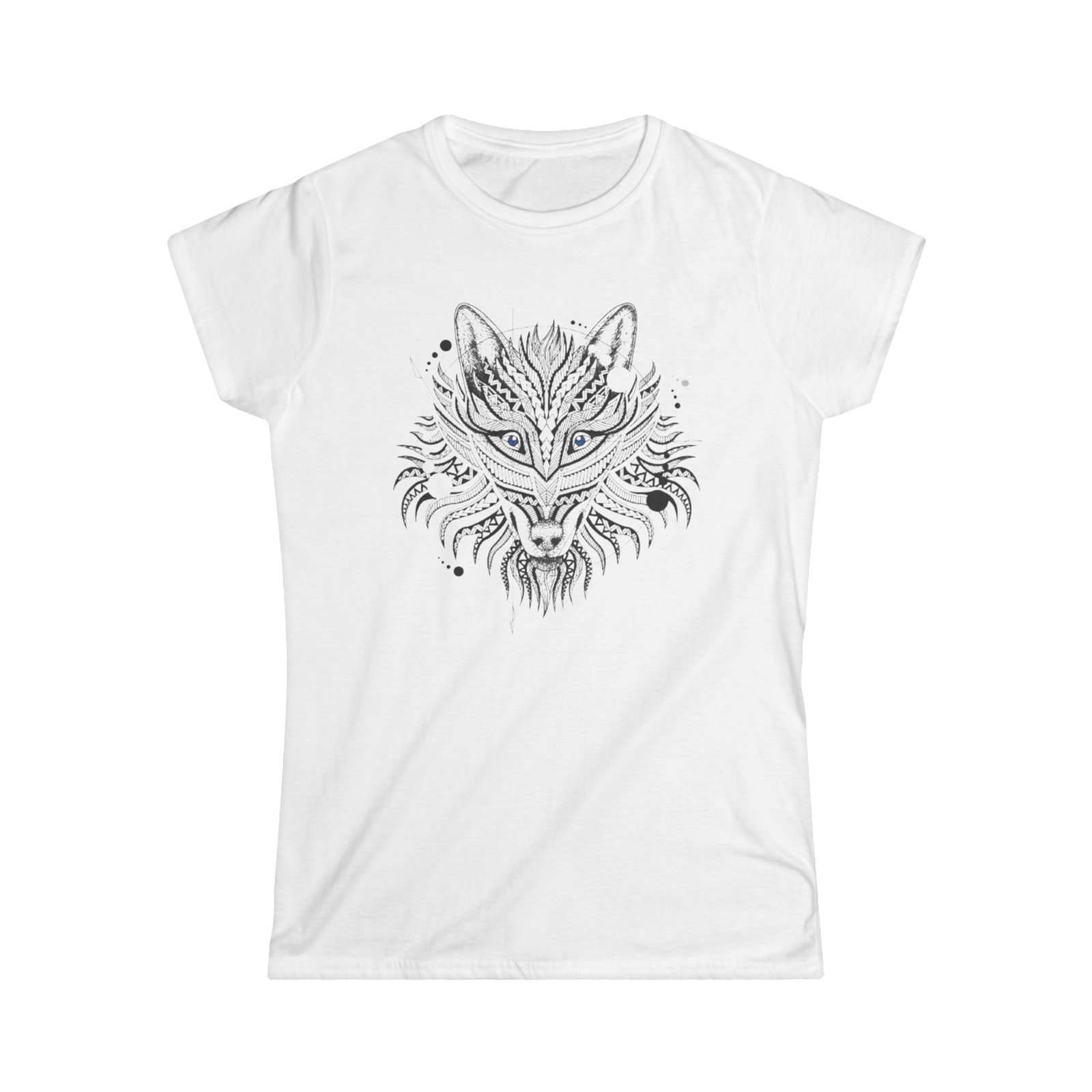 Wolf Tattoo Tshirt. The woman’s softstyle tee is a more feminine take on the classic tee. The sleeves are shortened to reveal some shoulder. The fabric is 100% ringspun cotton for all solid colors. The shoulders are taped with twill to prolong durability. The collar seam is reinforced with ribbed knitting.